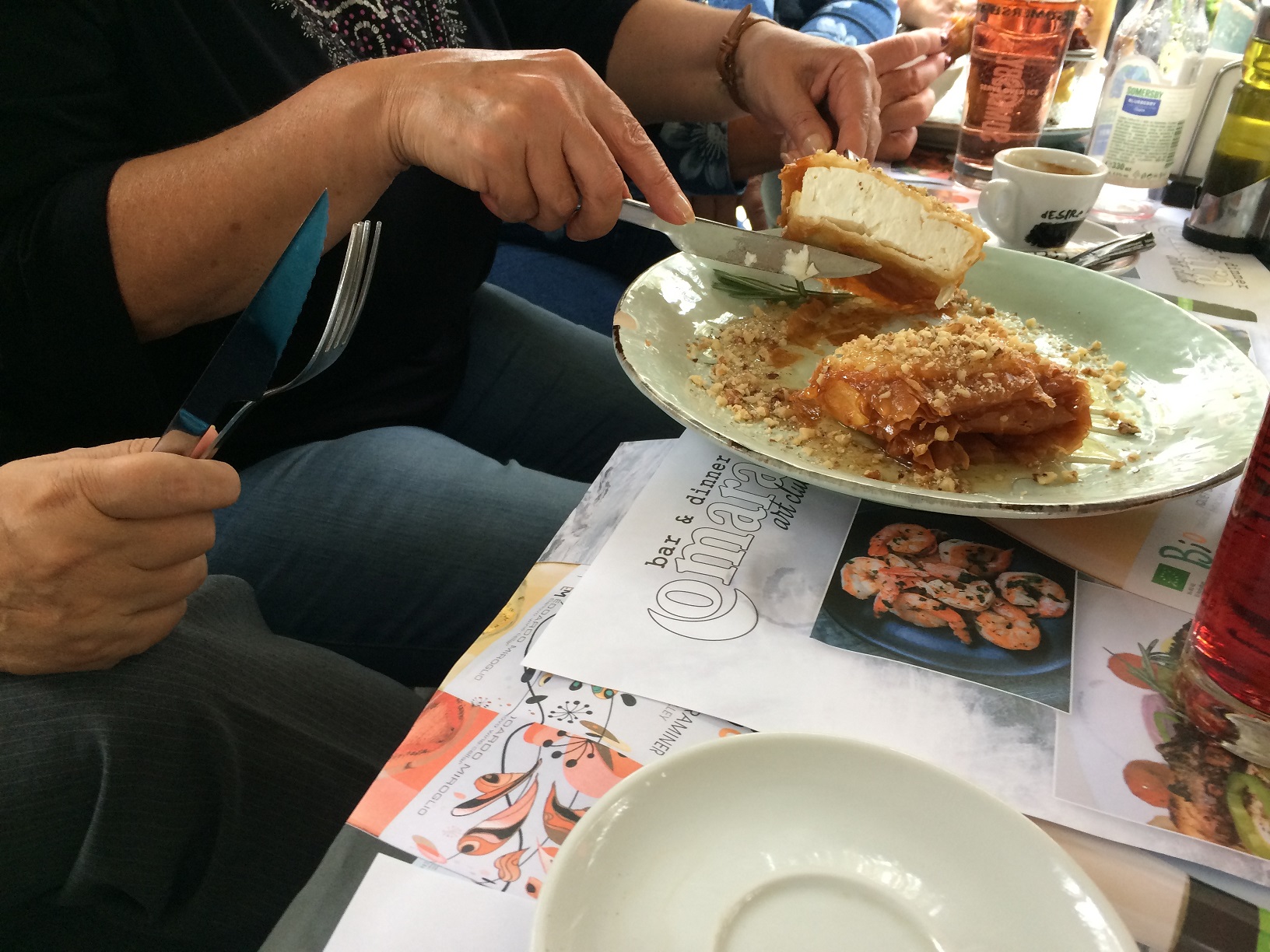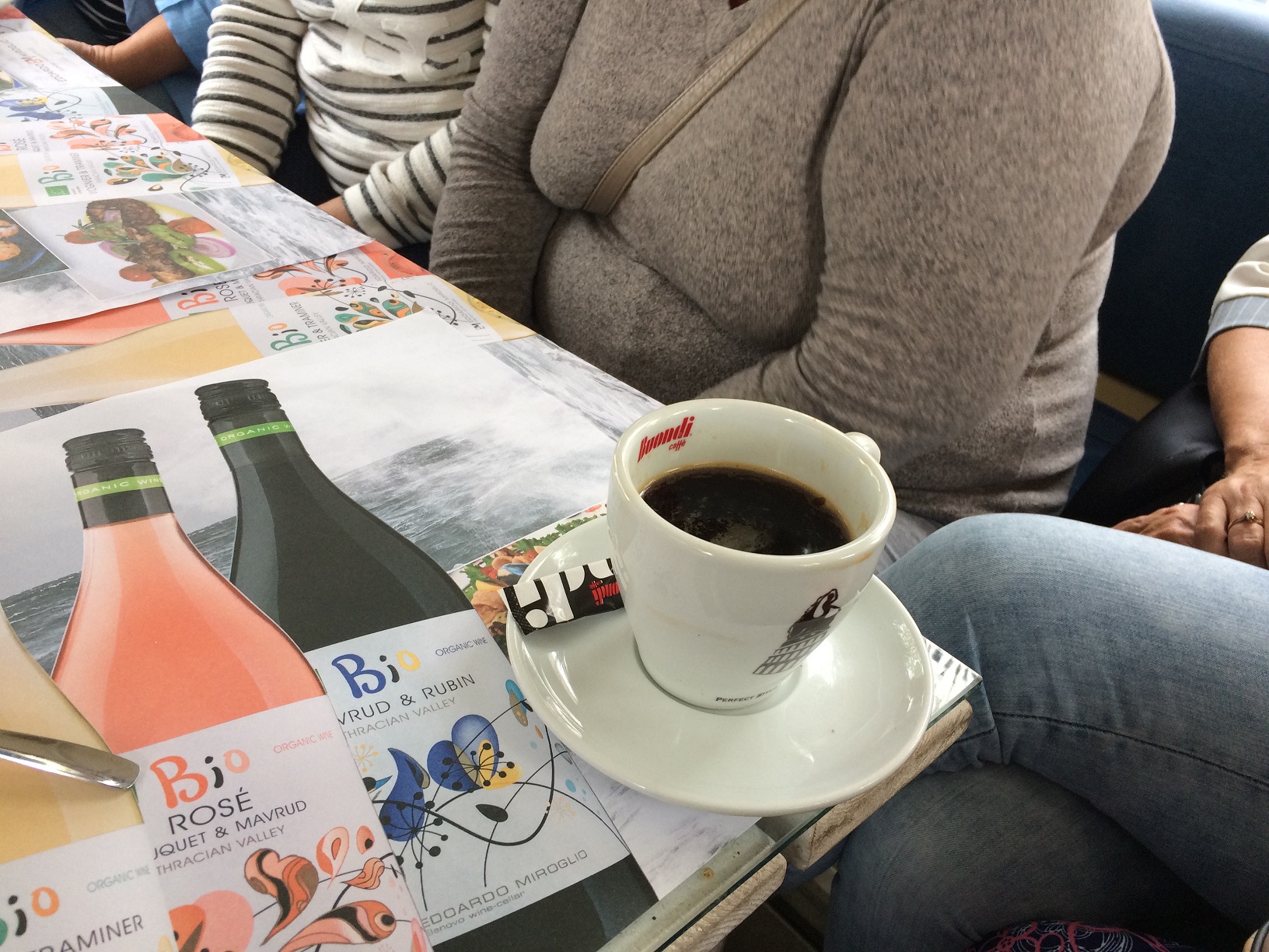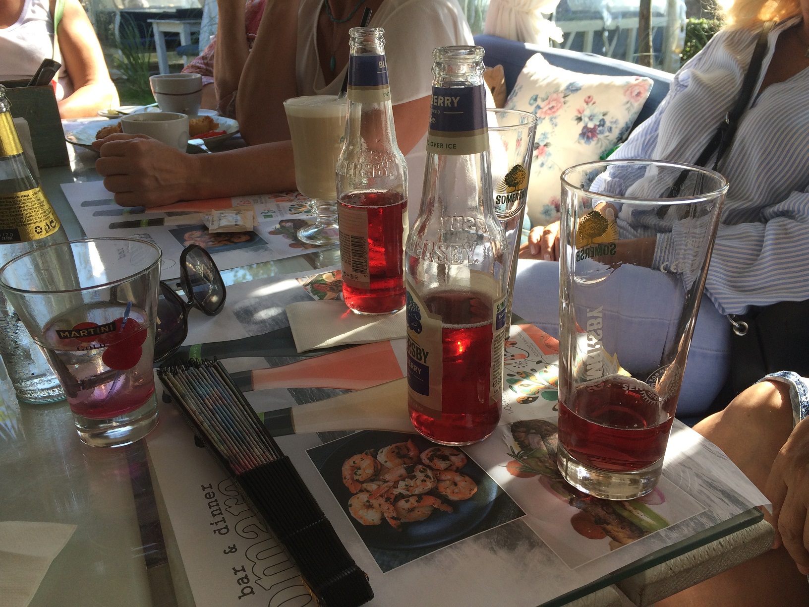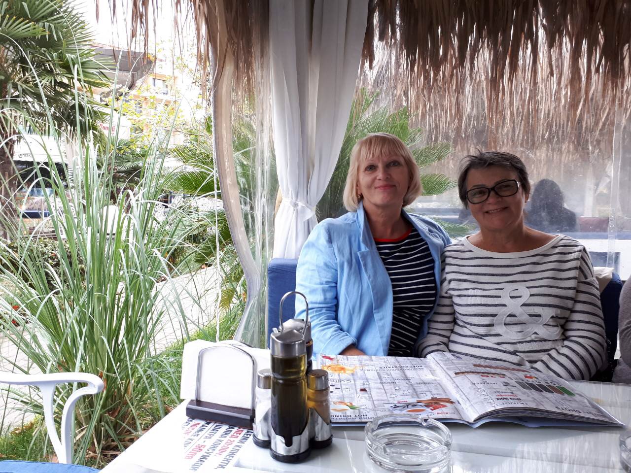 Поскольку вчера был День пенсионеров или День пожилых людей, то решили хоть что-нибудь выпить в честь этого дня. Девочки смотрят карту напитков.