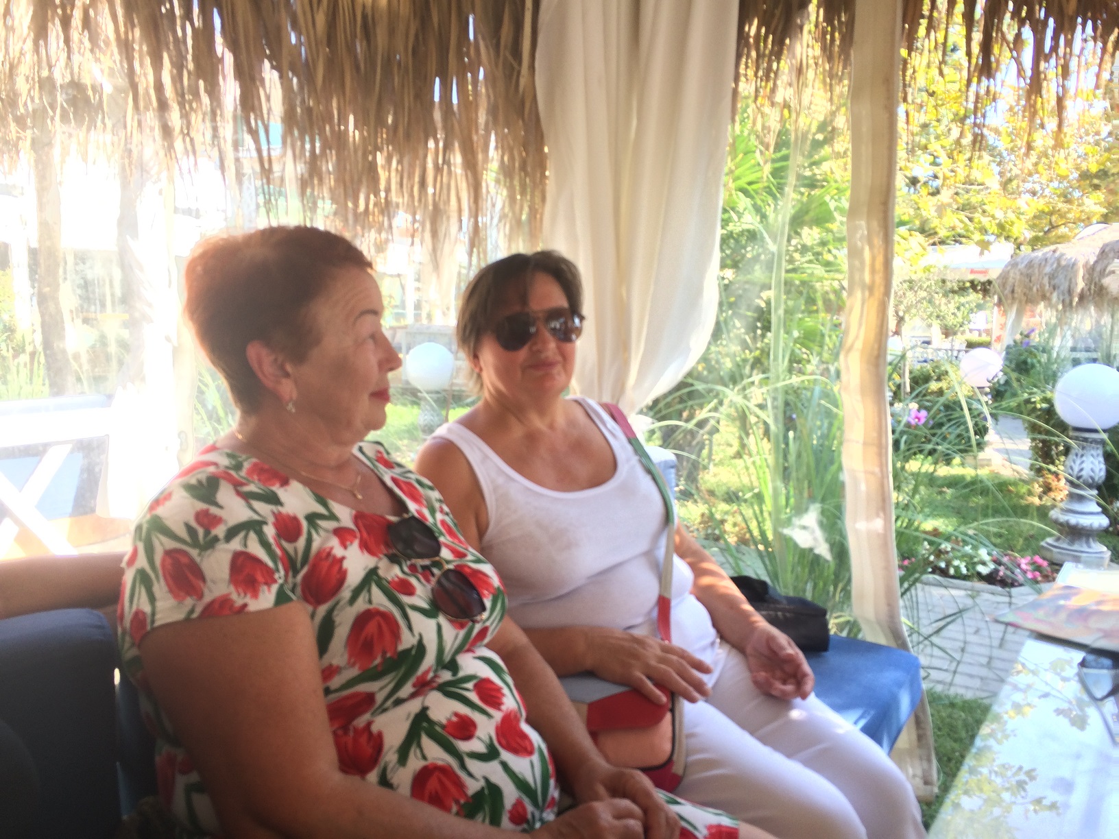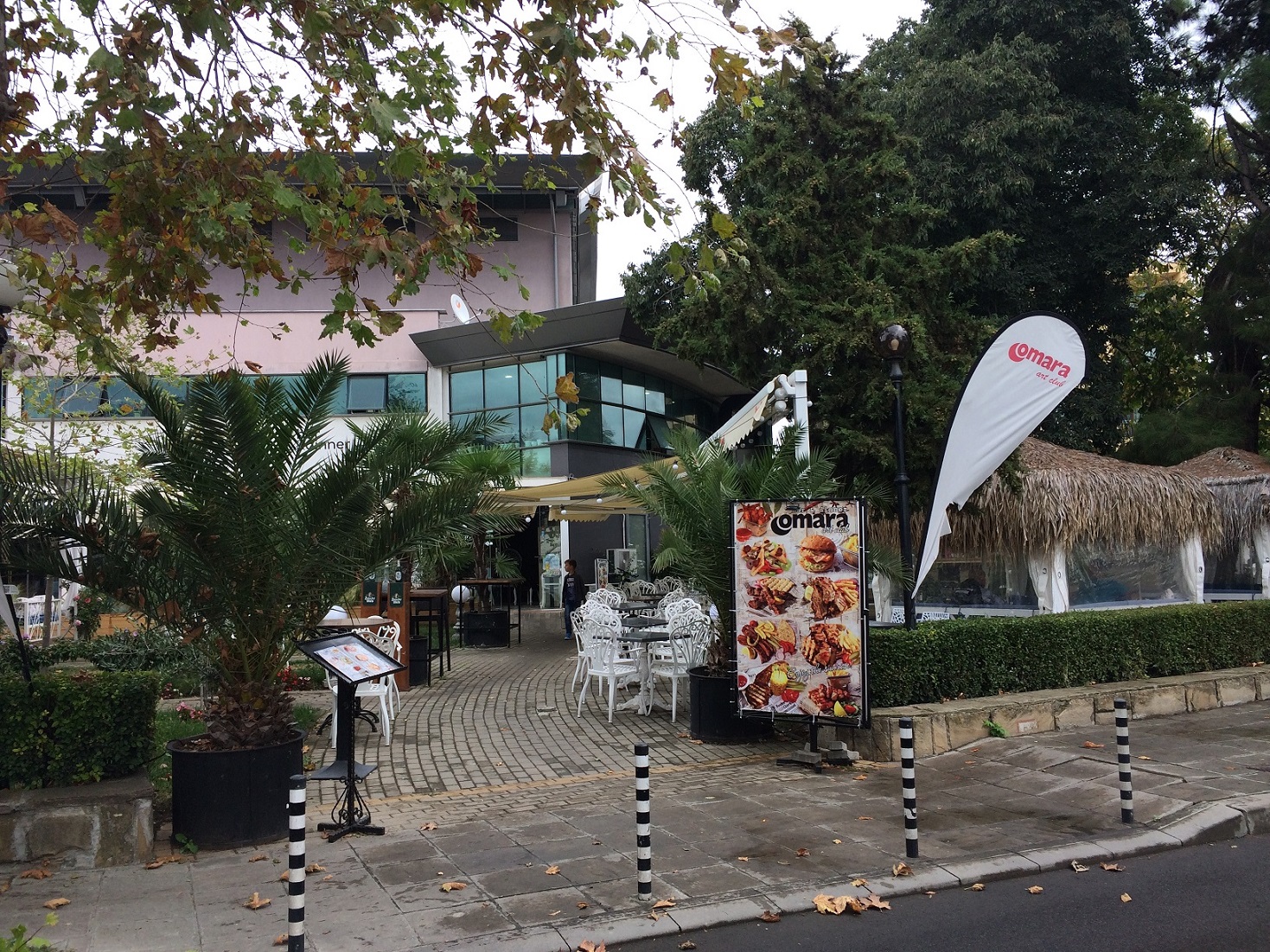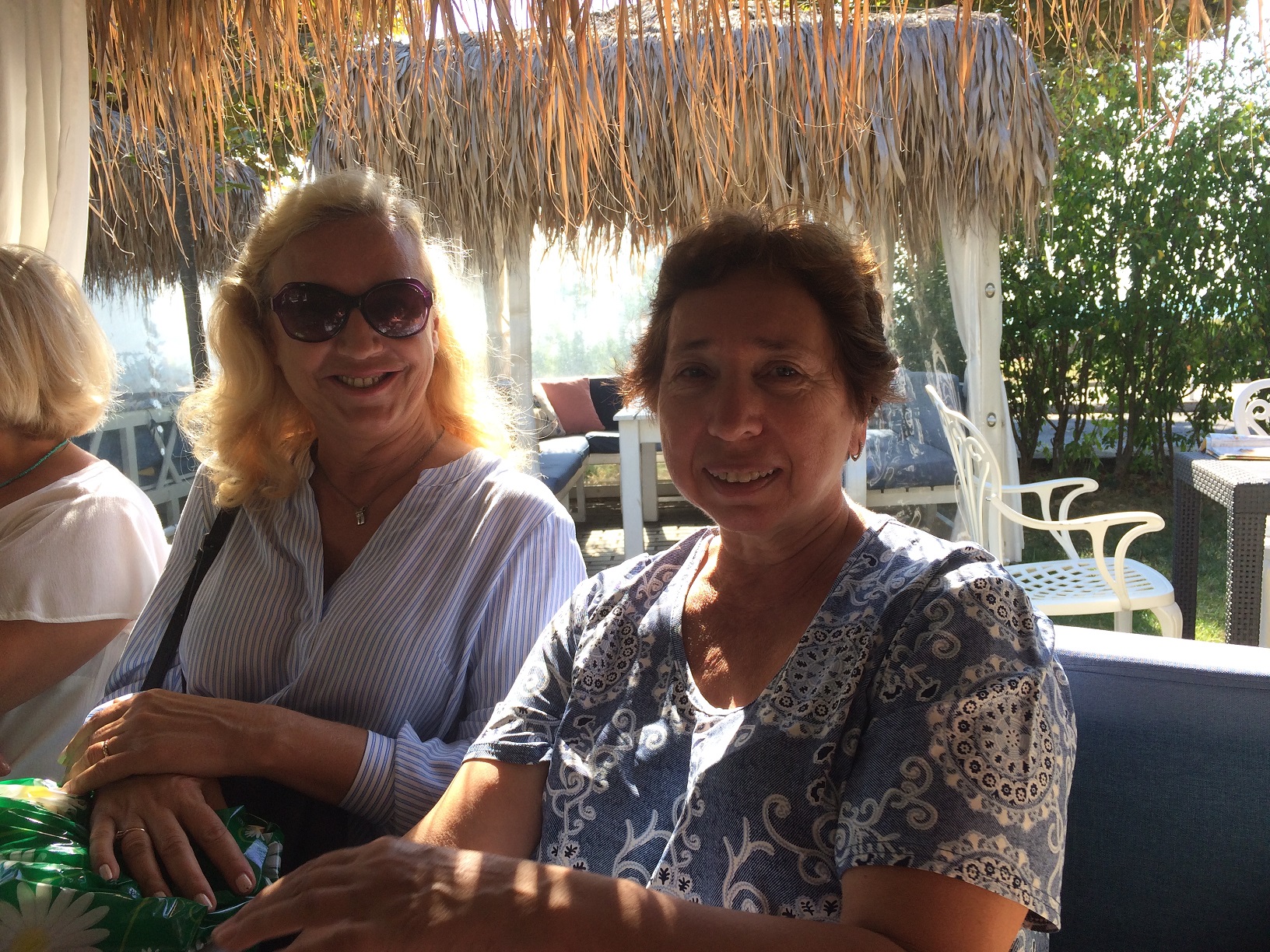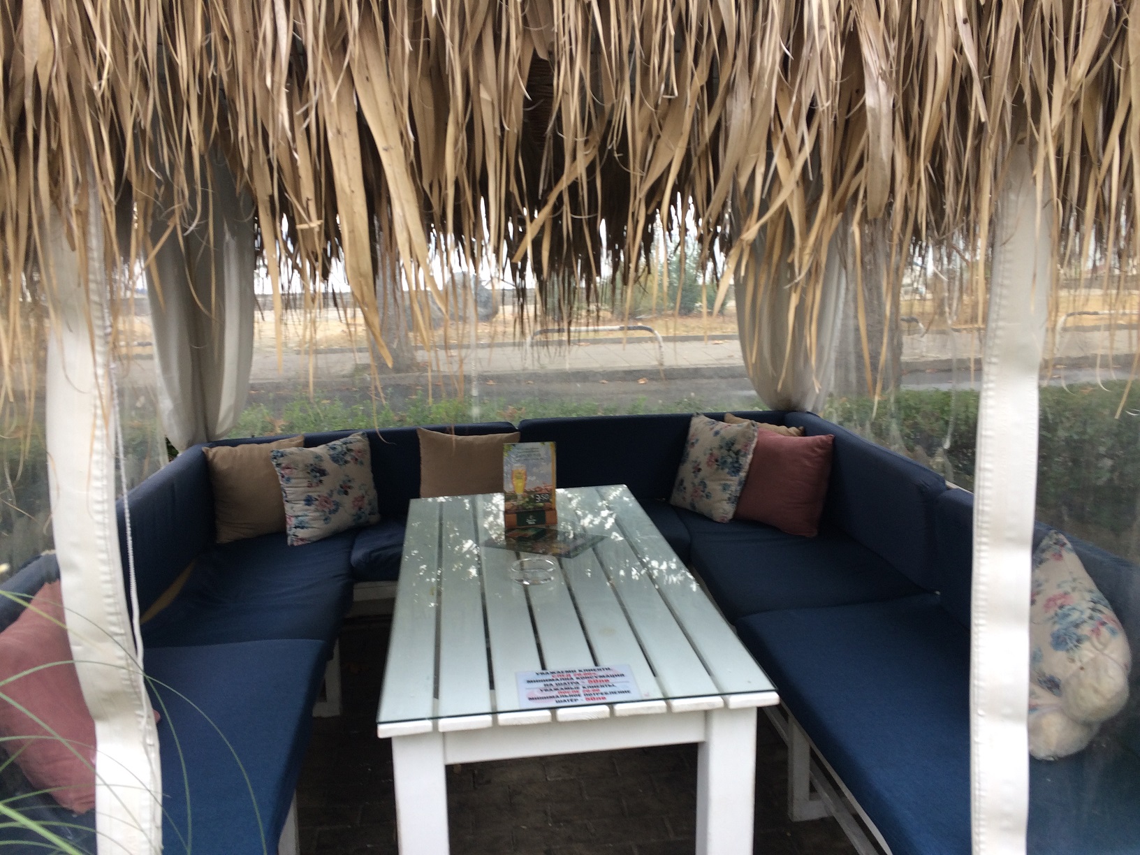 Я опять пришла в ресторан первой, но в этот раз в такой тёплый день в ресторанчике было больше народу и почти все павильончики были заняты, хоть один человек, да сидел там. Поэтому мне пришлось выбрать павильон , расположенный не вдоль дороги, а в торце территории ресторана, где освещённость меньше. Поэтому извините, фотографии несколько темноваты!