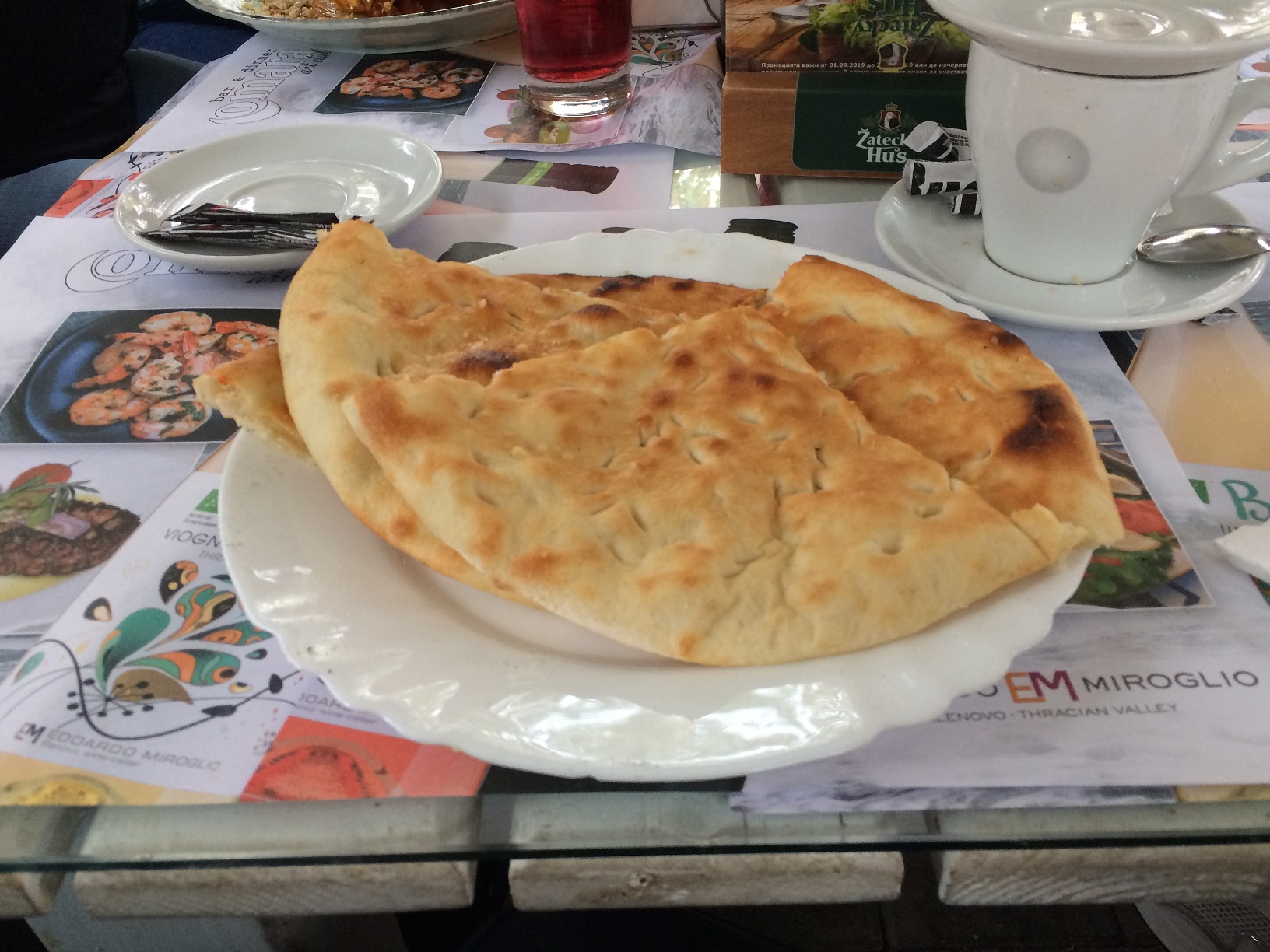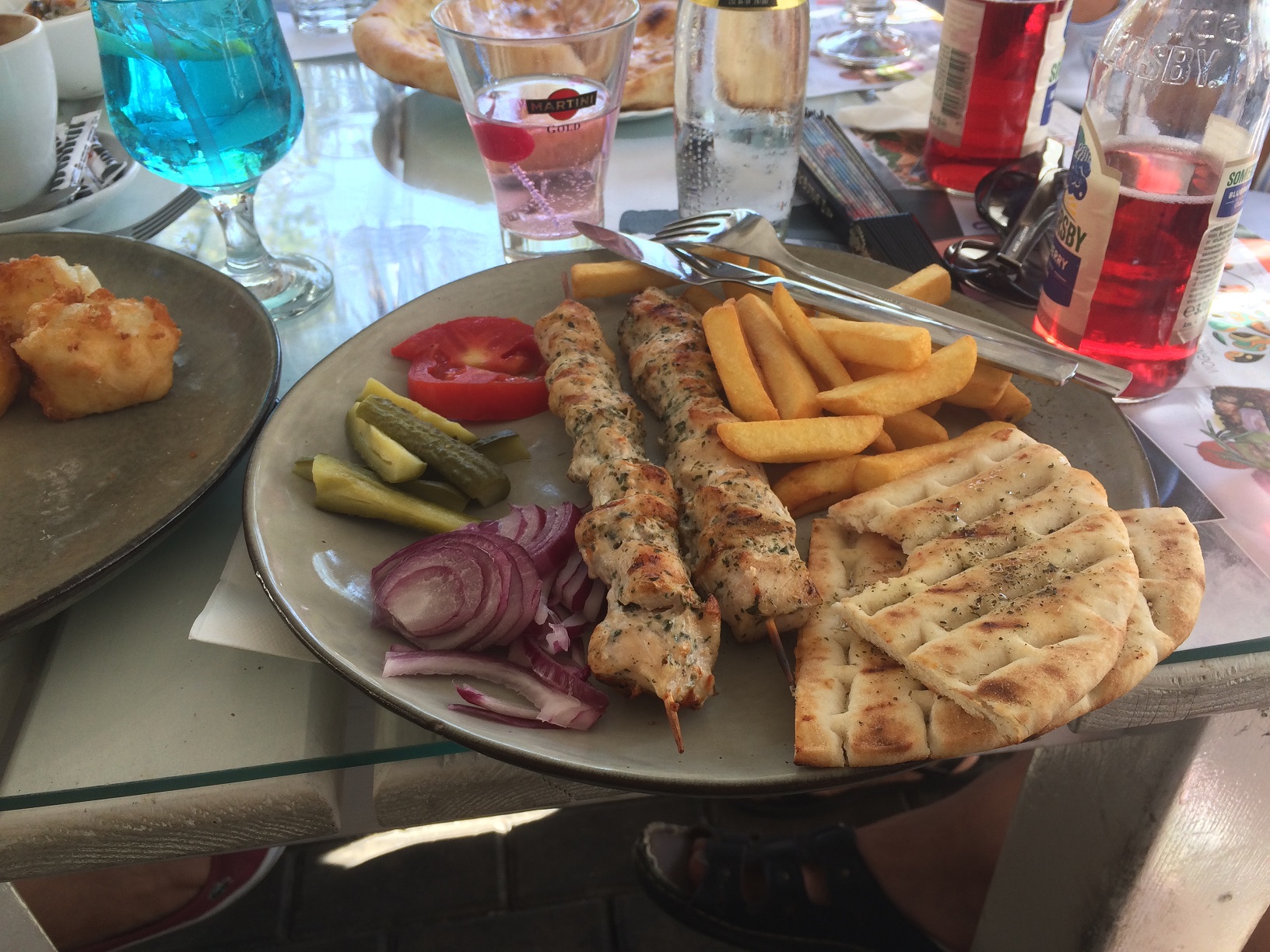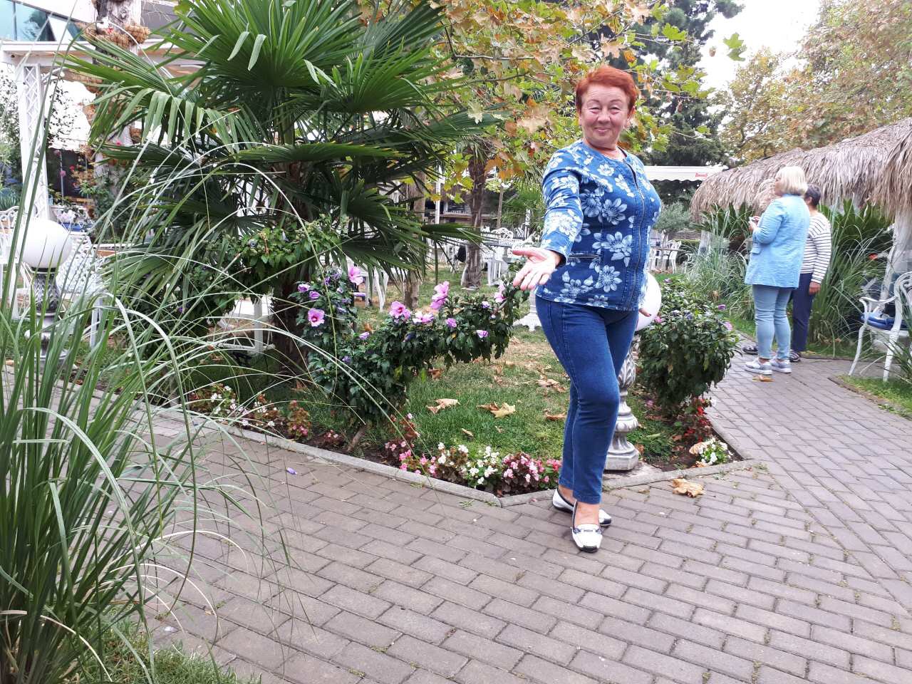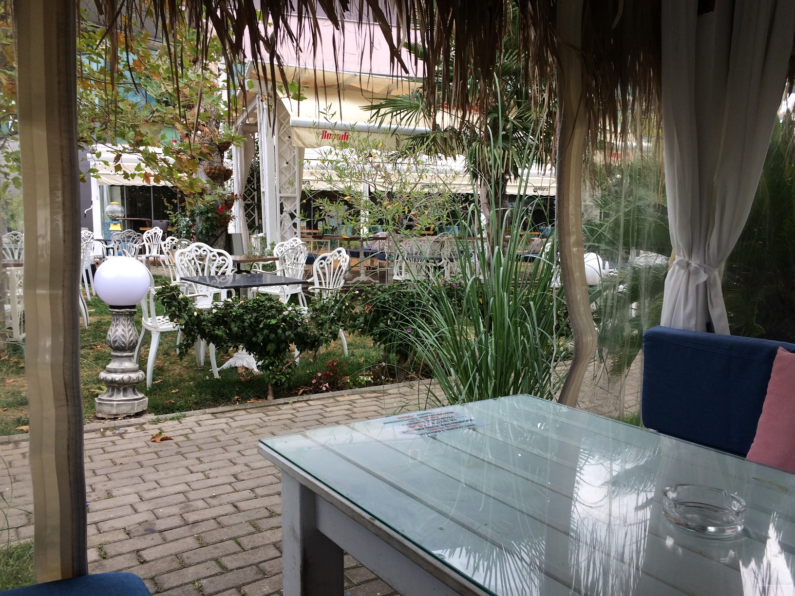 Я опять пришла в ресторан первой, но в этот раз в такой тёплый день в ресторанчике было больше народу и почти все павильончики были заняты, хоть один человек, да сидел там. Поэтому мне пришлось выбрать павильон , расположенный не вдоль дороги, а в торце территории ресторана, где освещённость меньше. Поэтому извините, фотографии несколько темноваты!