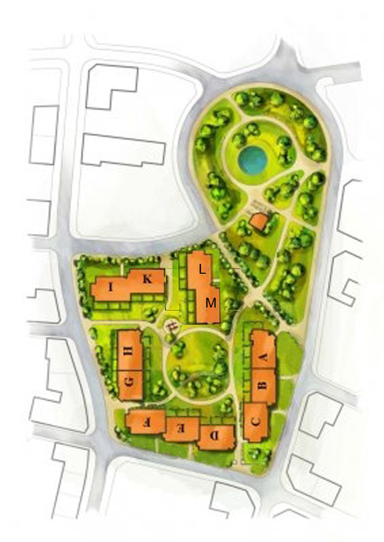 Танюшенька, этот план был рукописный, поэтому приблизительный.....и очень трудно на словах описывать......Корпус L параллельно ( примерно на одном уровне ) с корп.К; а корп.М под углом к L (не могу утверждать, но должно быть 90 град), т к корп. шёл точно параллельно корп. А,В.