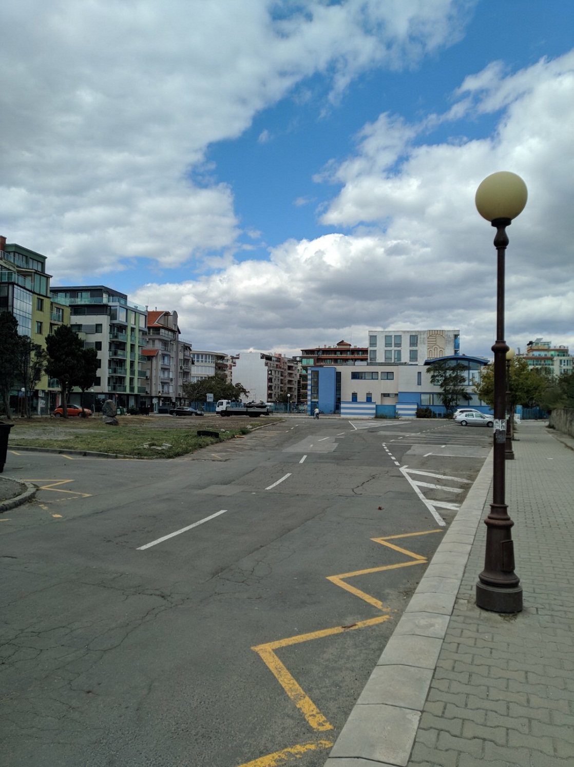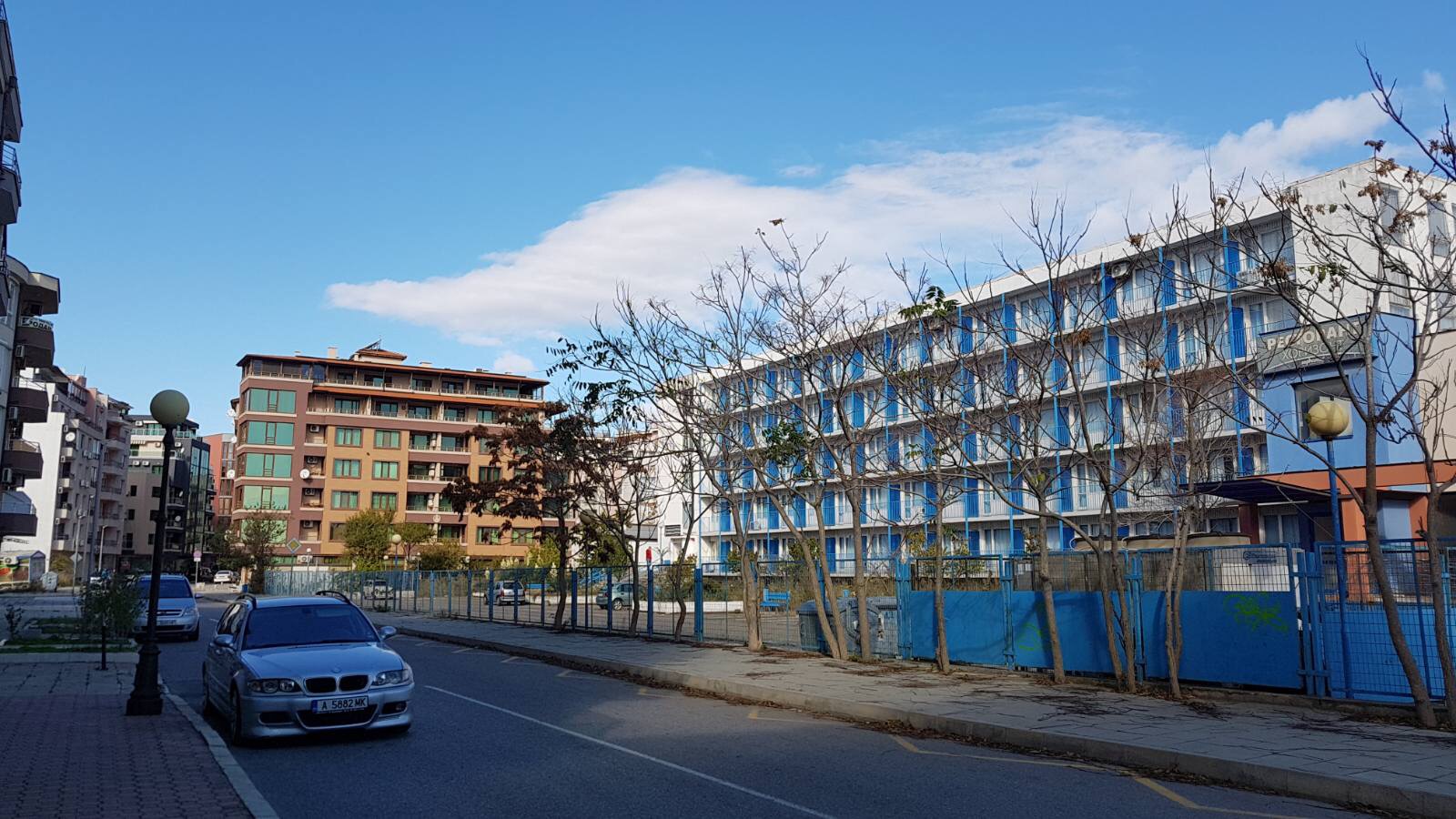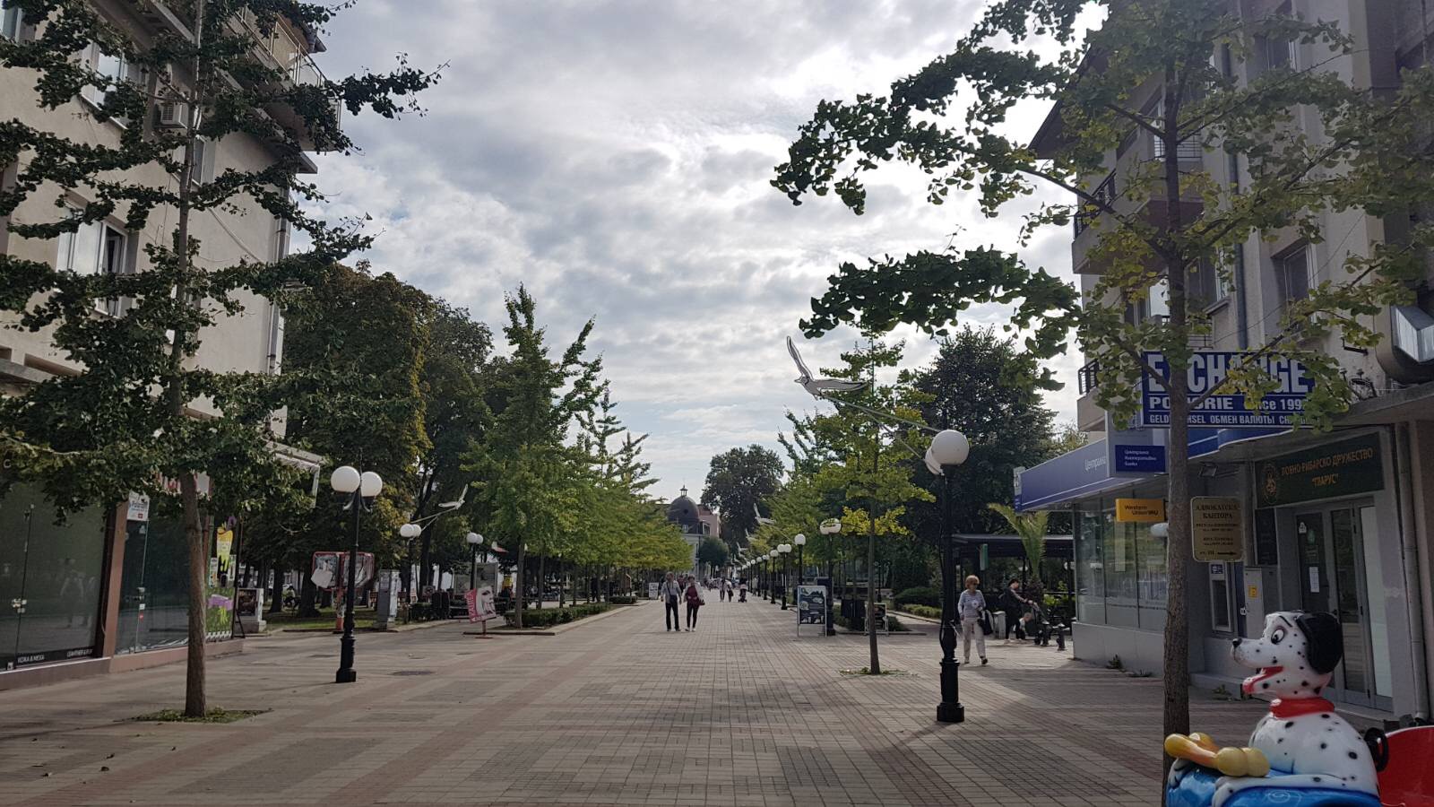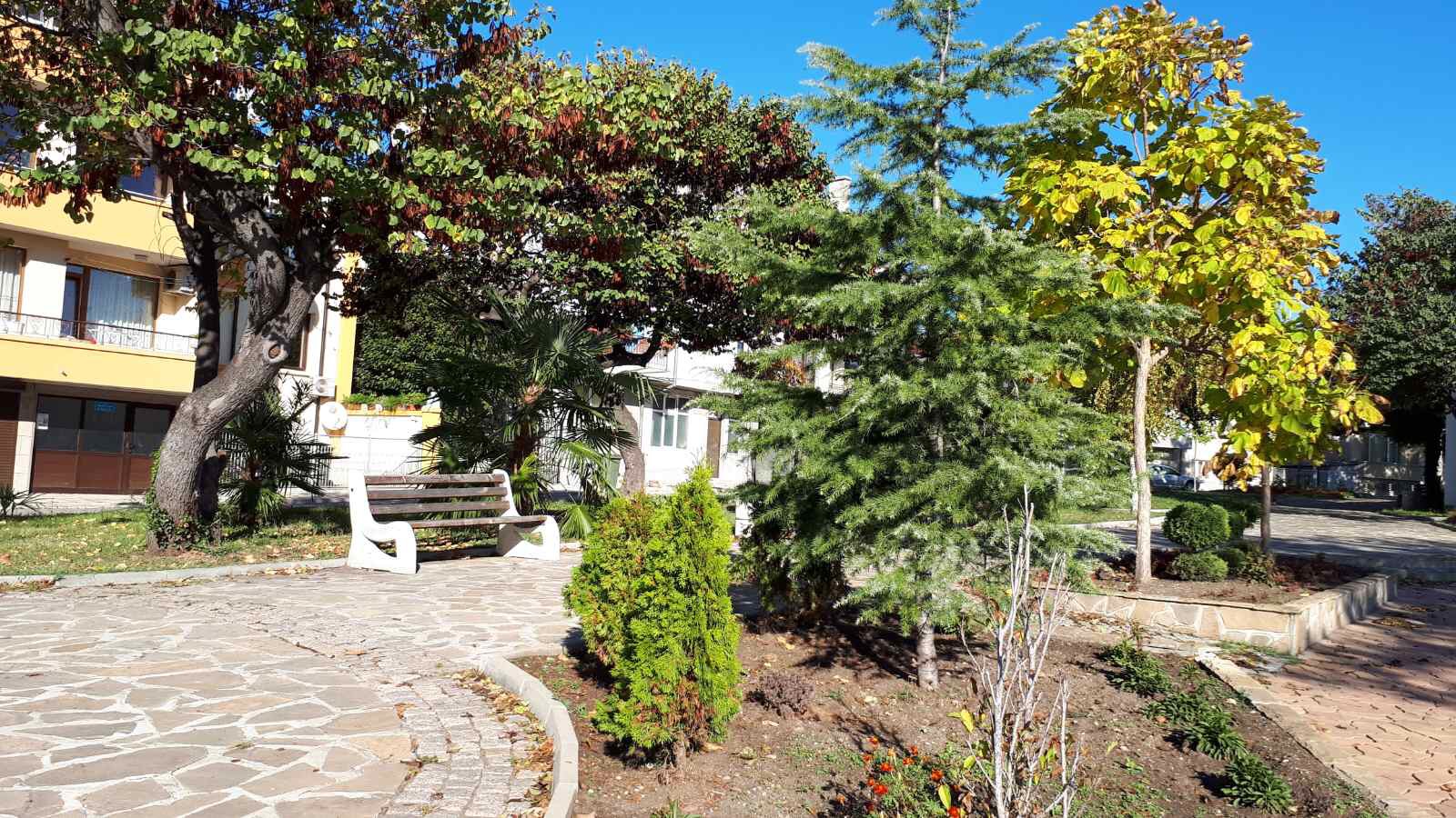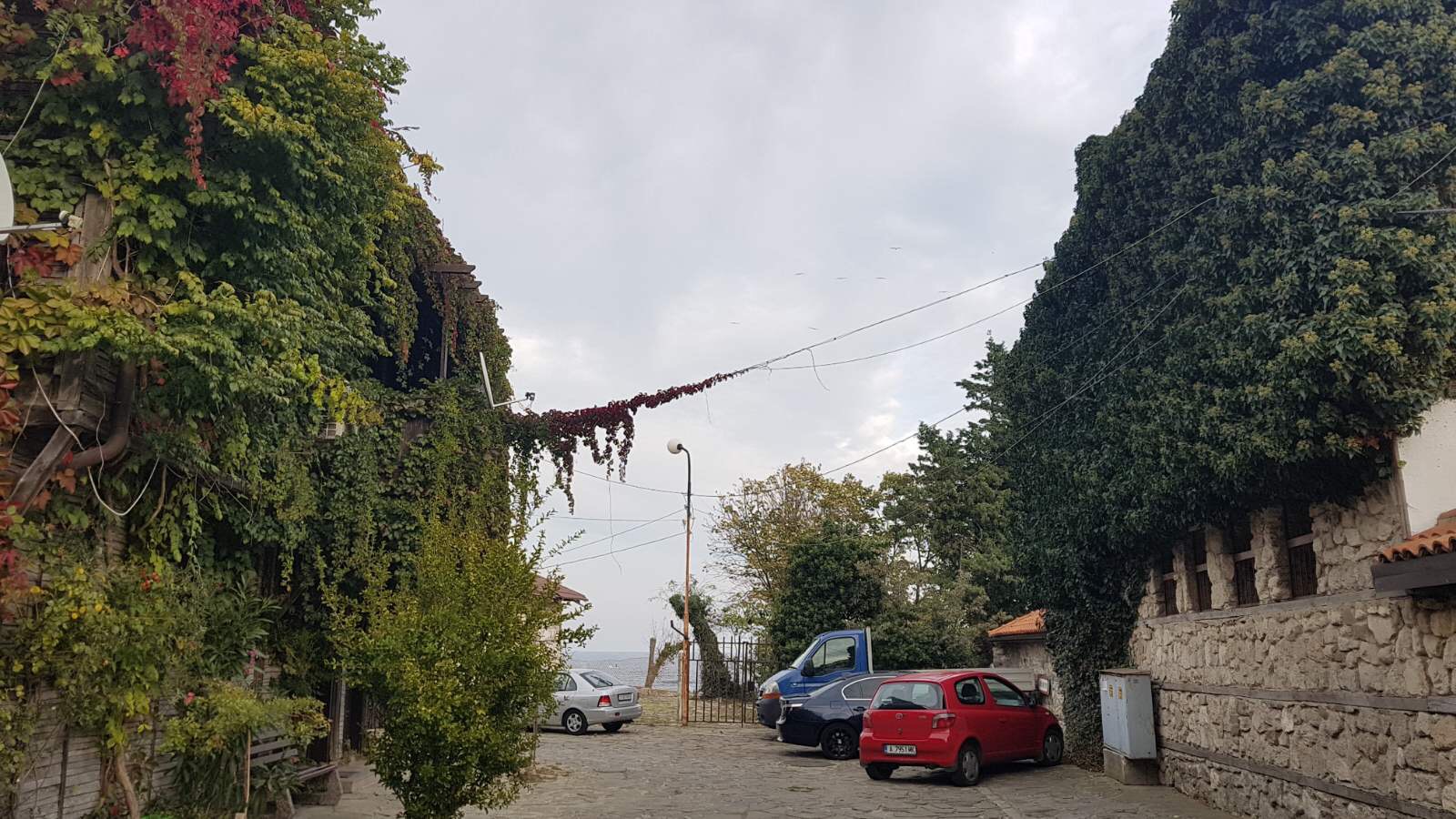 Набережная П. Яворов. Перел нами белая лестница к морю, справа впереди видно здание красивого небольшого отеля (названия не знаю), а слева напротив него ресторан Paros.
