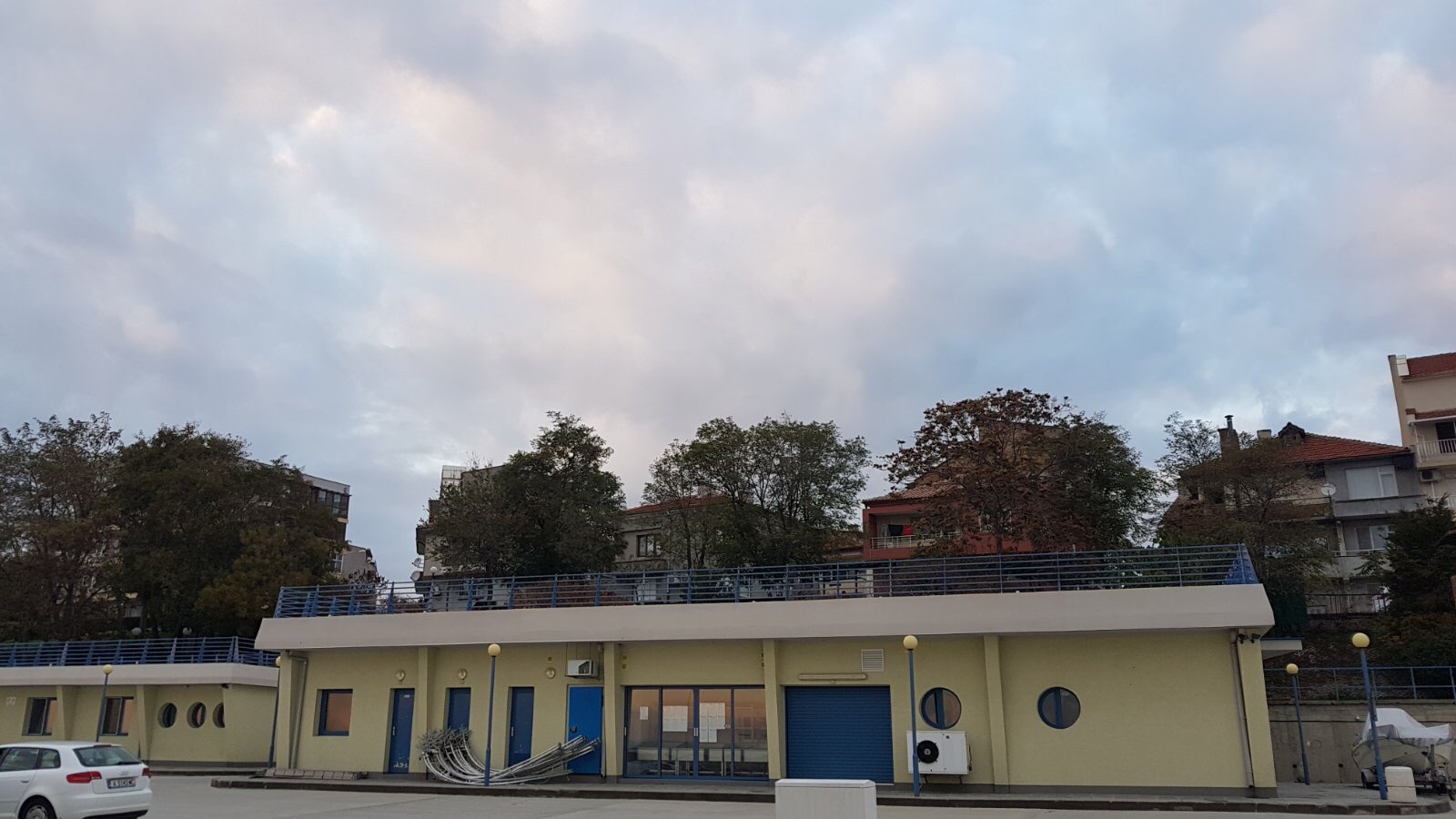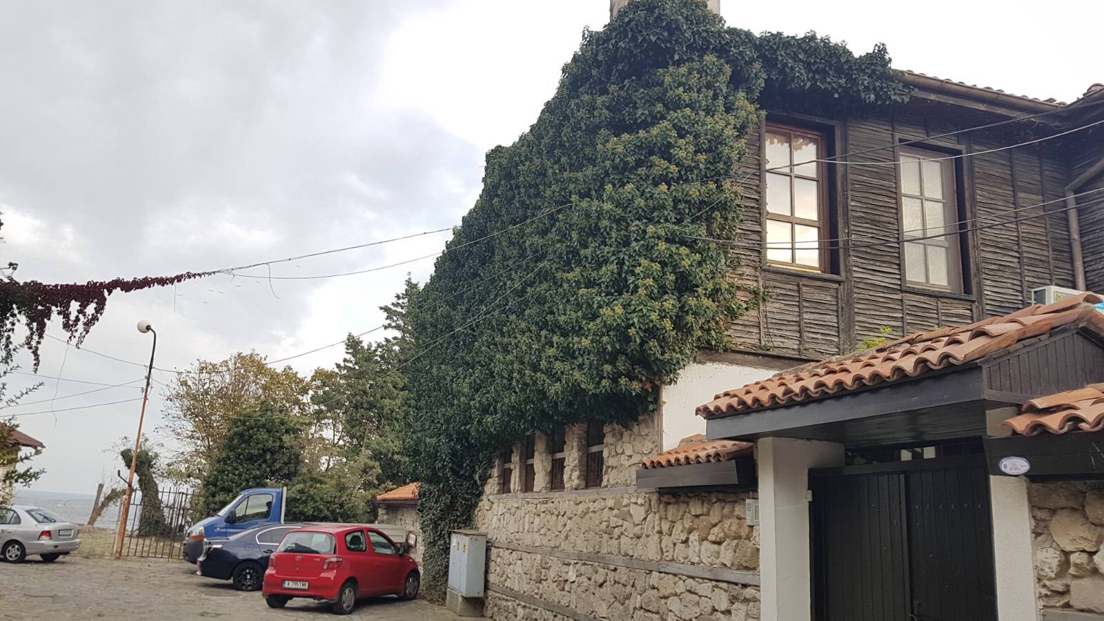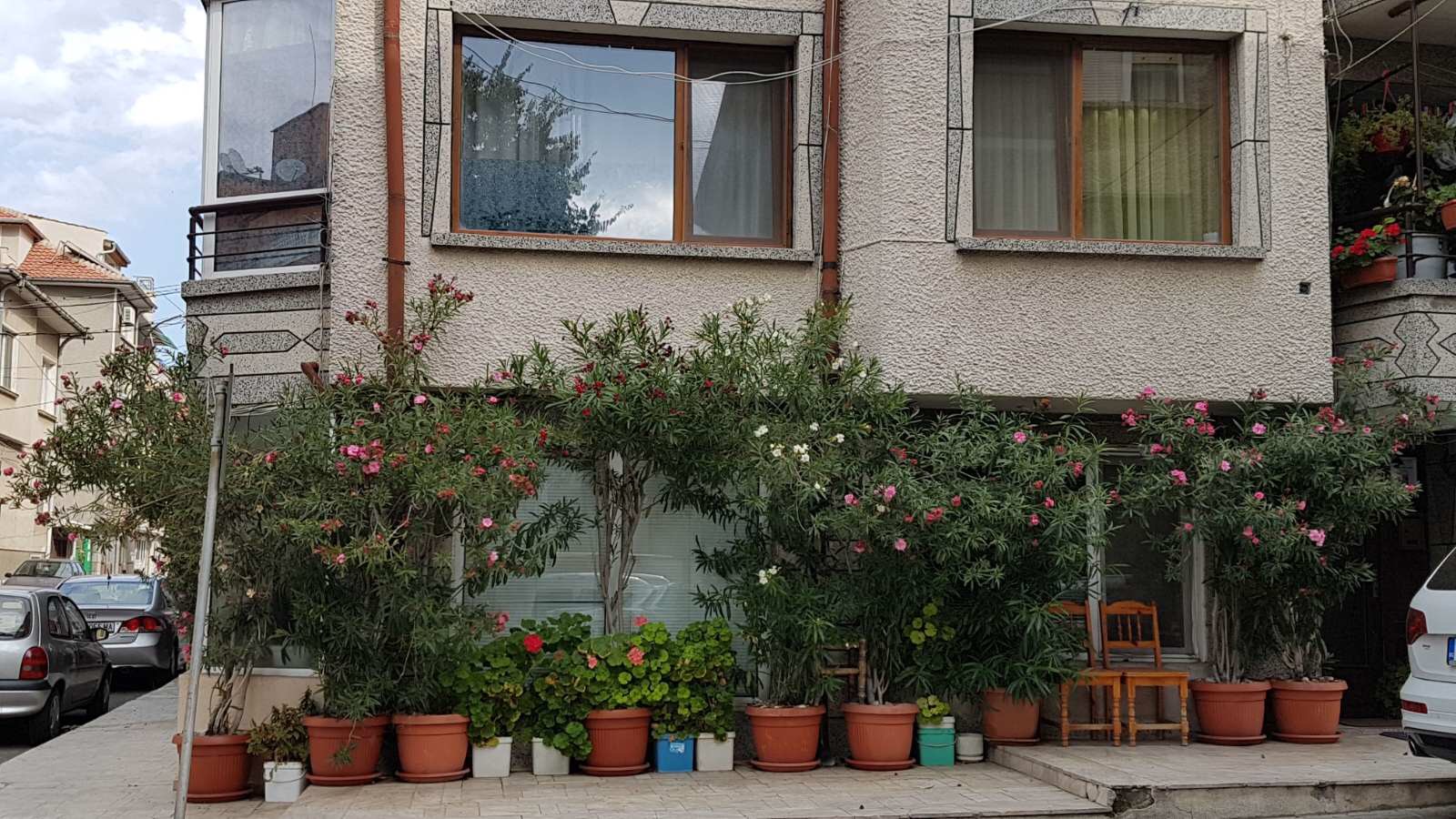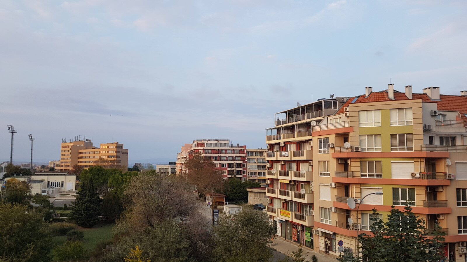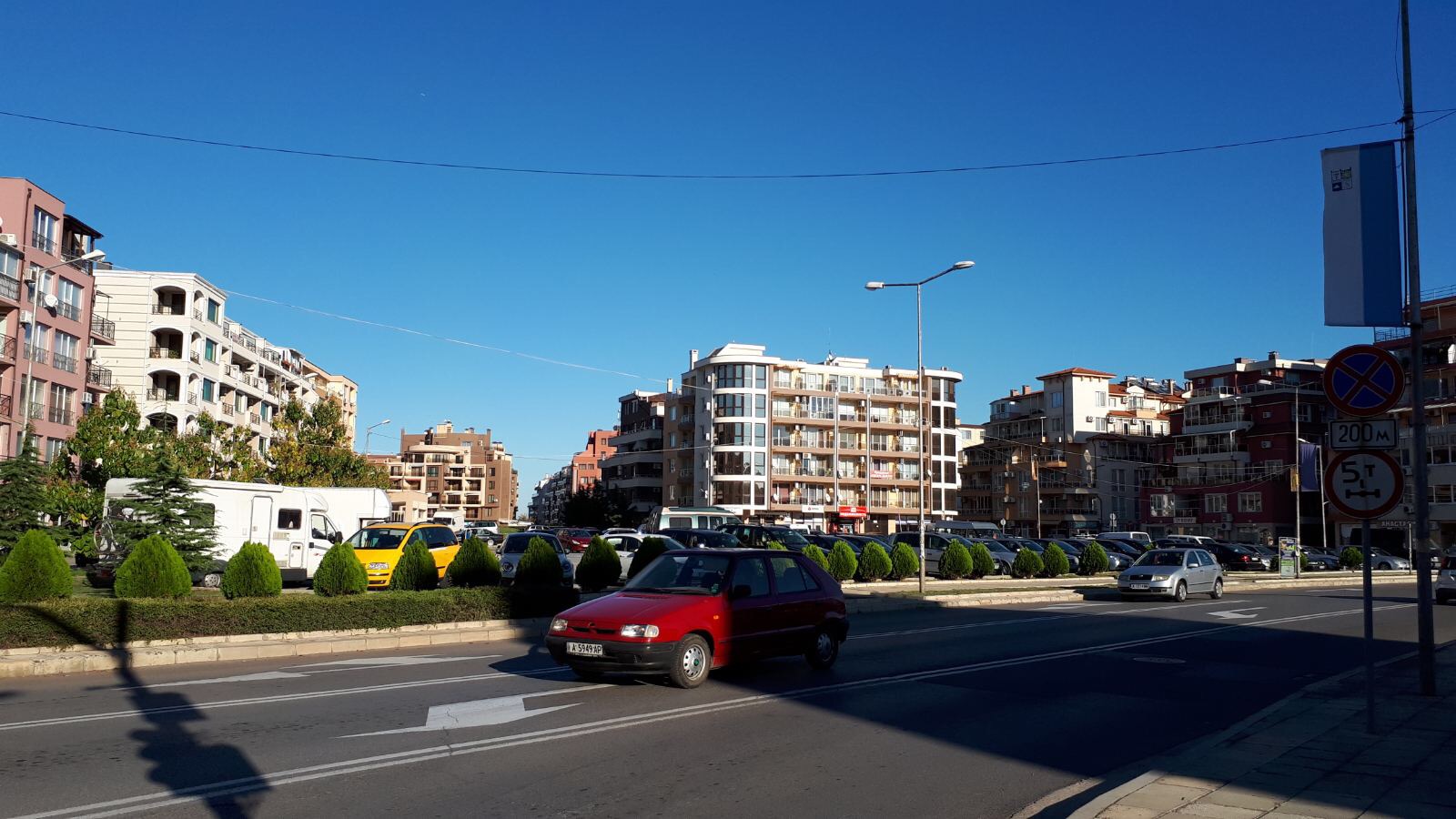 Набережная П. Яворов. Перел нами белая лестница к морю, справа впереди видно здание красивого небольшого отеля (названия не знаю), а слева напротив него ресторан Paros.