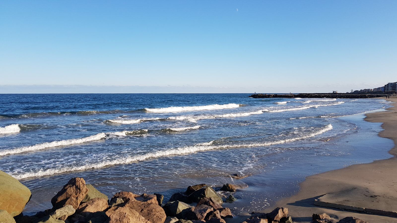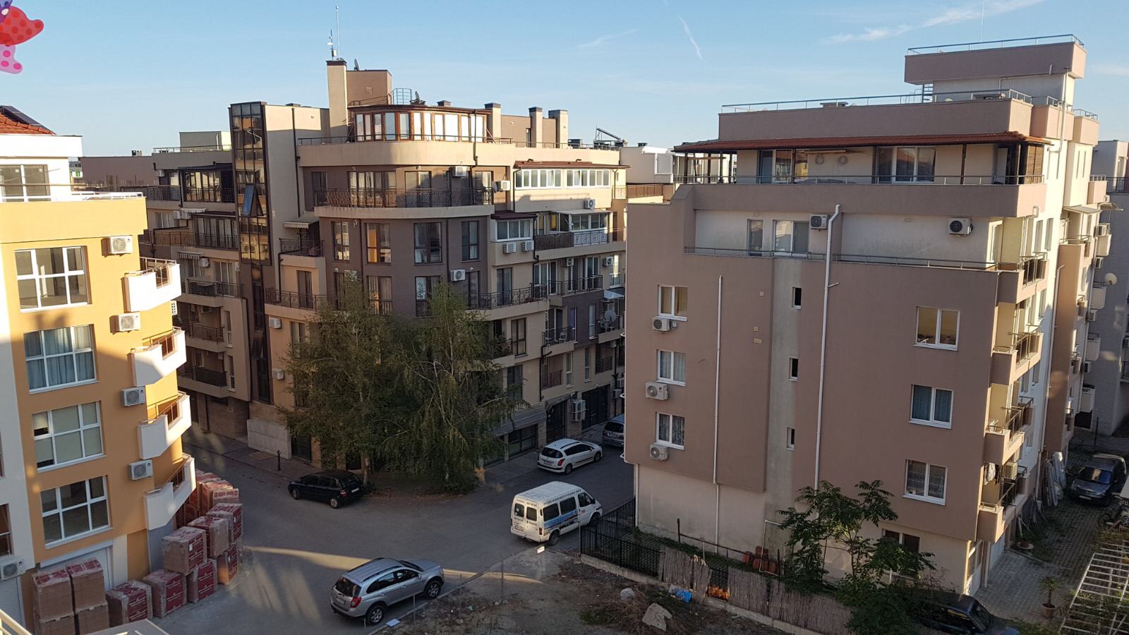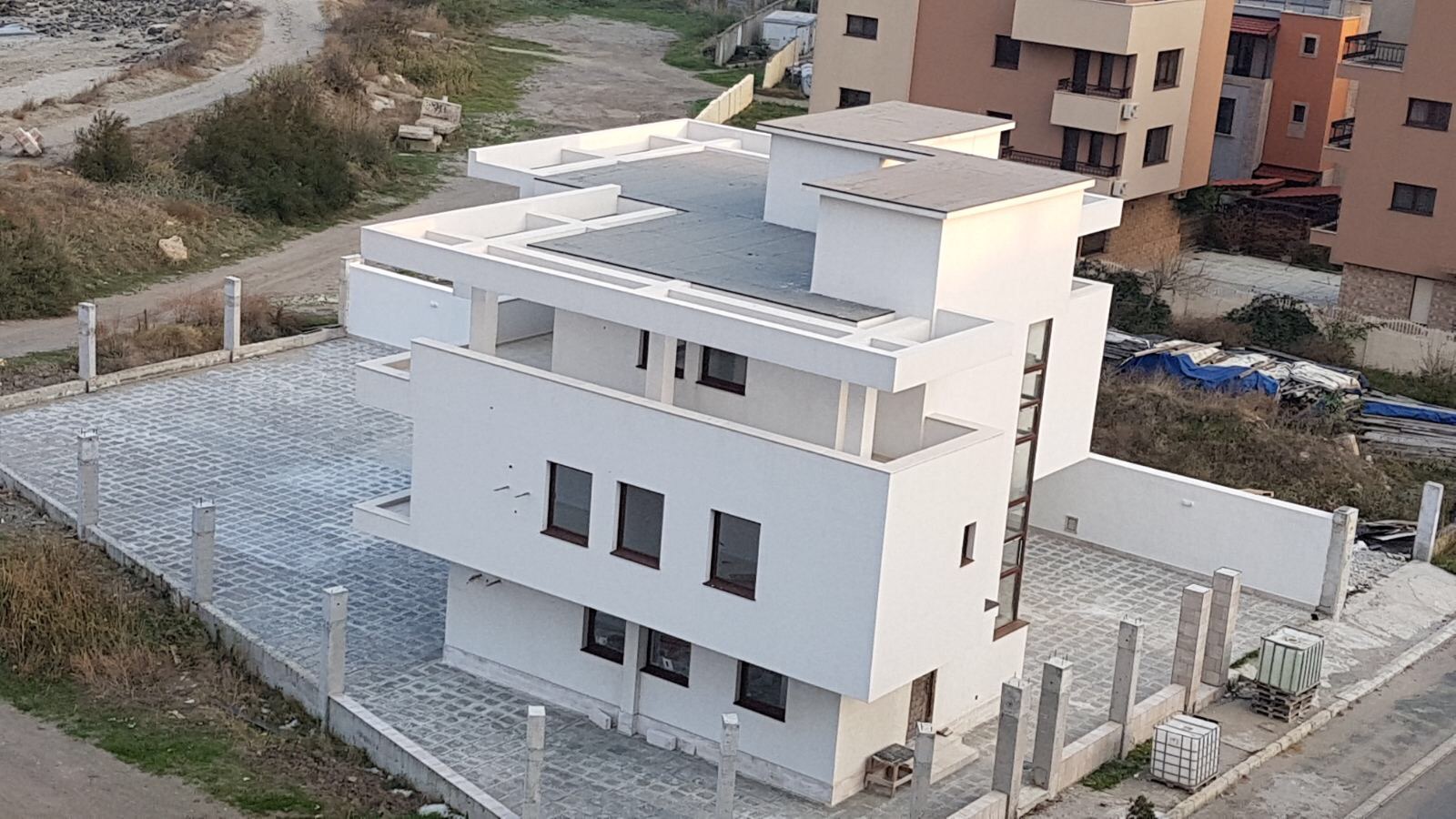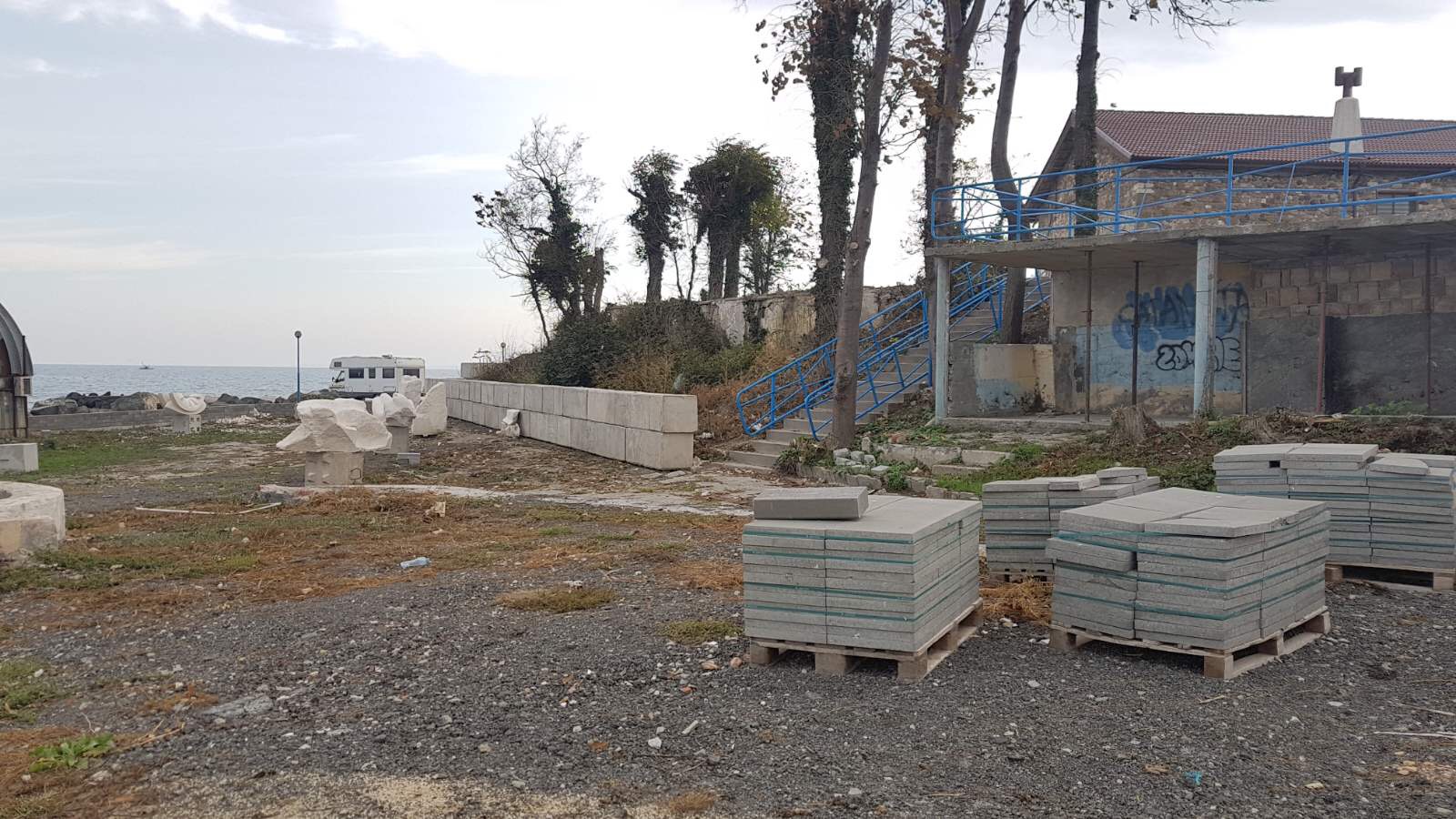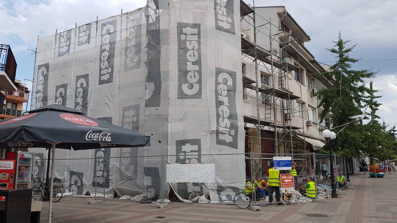 Набережная П. Яворов. Перел нами белая лестница к морю, справа впереди видно здание красивого небольшого отеля (названия не знаю), а слева напротив него ресторан Paros.