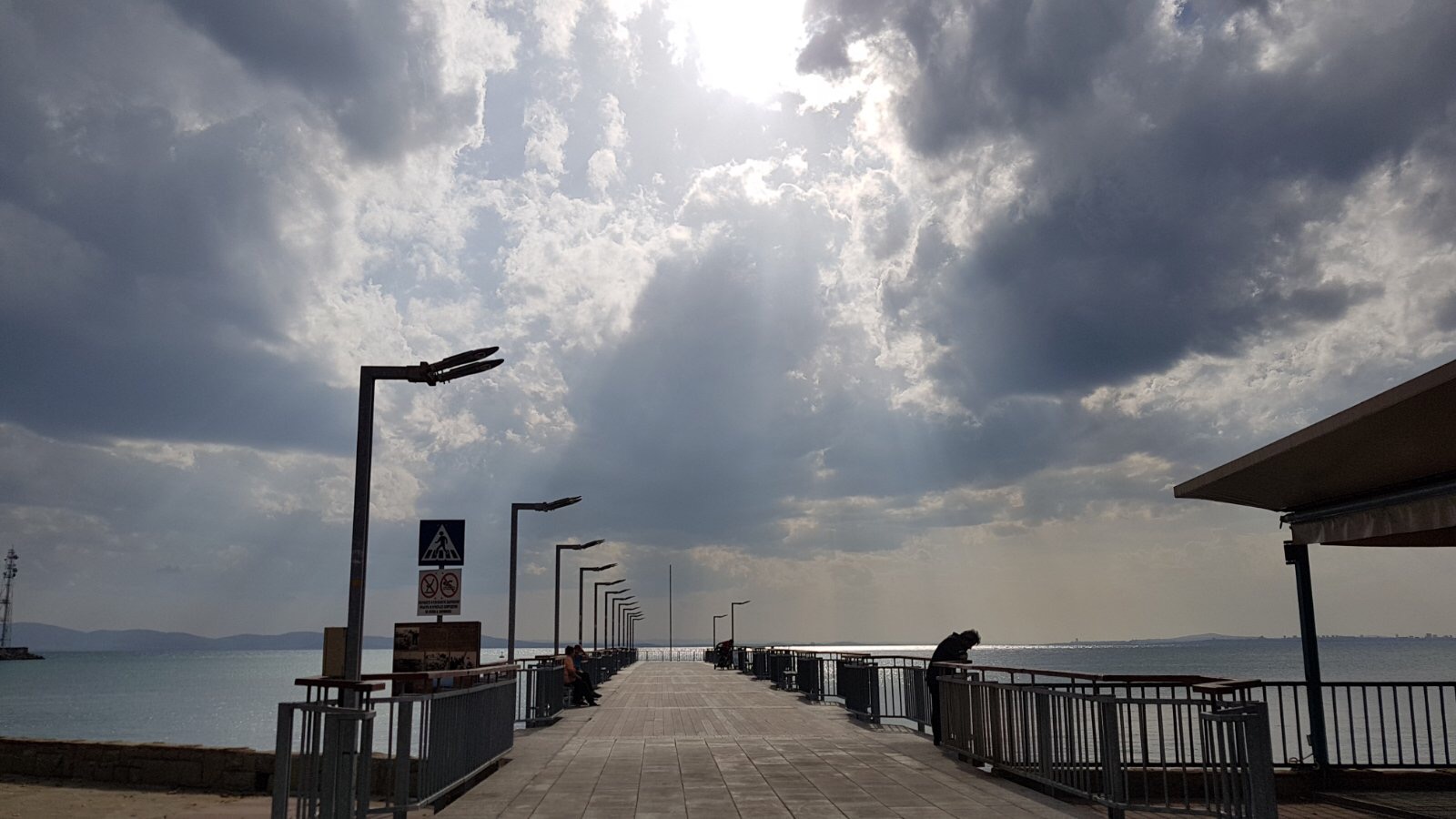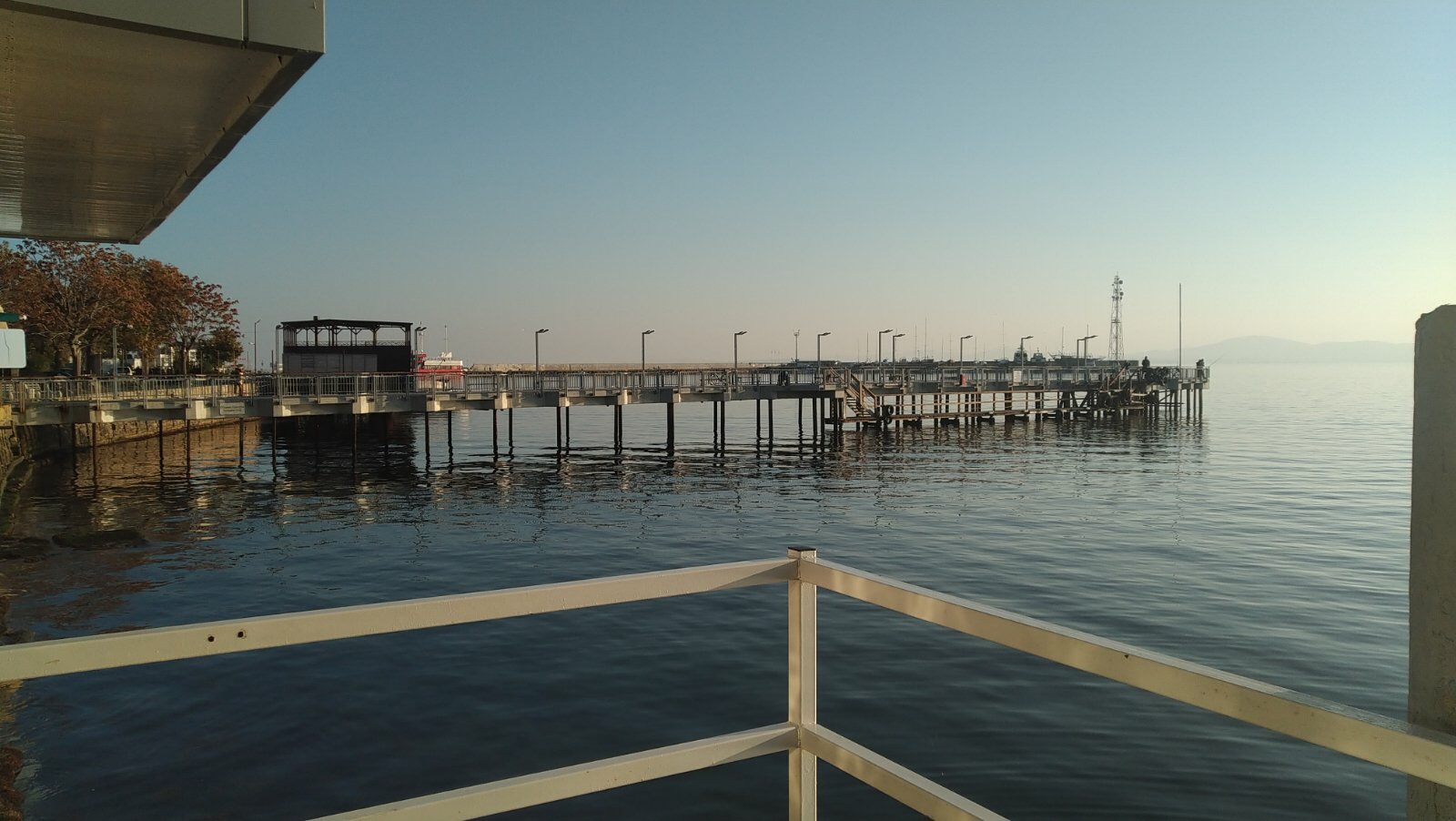 Подходим ближе. А в павильончиках и народ есть! Впереди виден слева причал, а справа круглый ресторан Немо.
