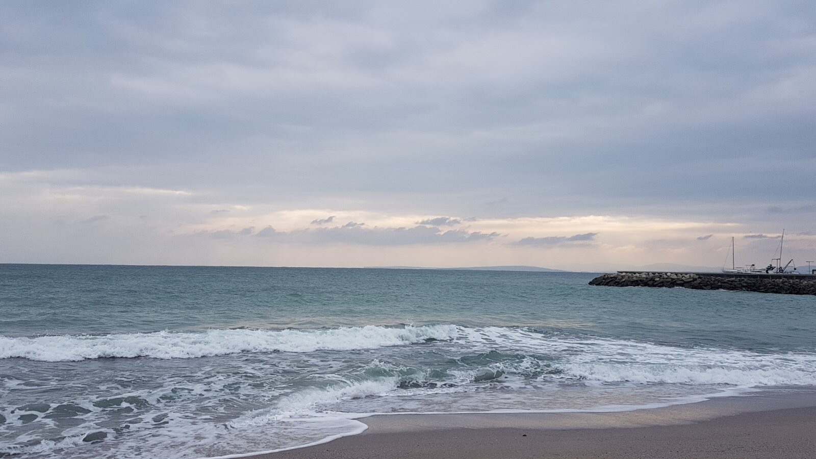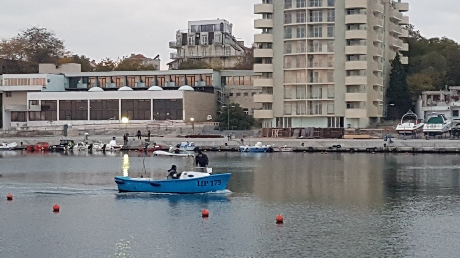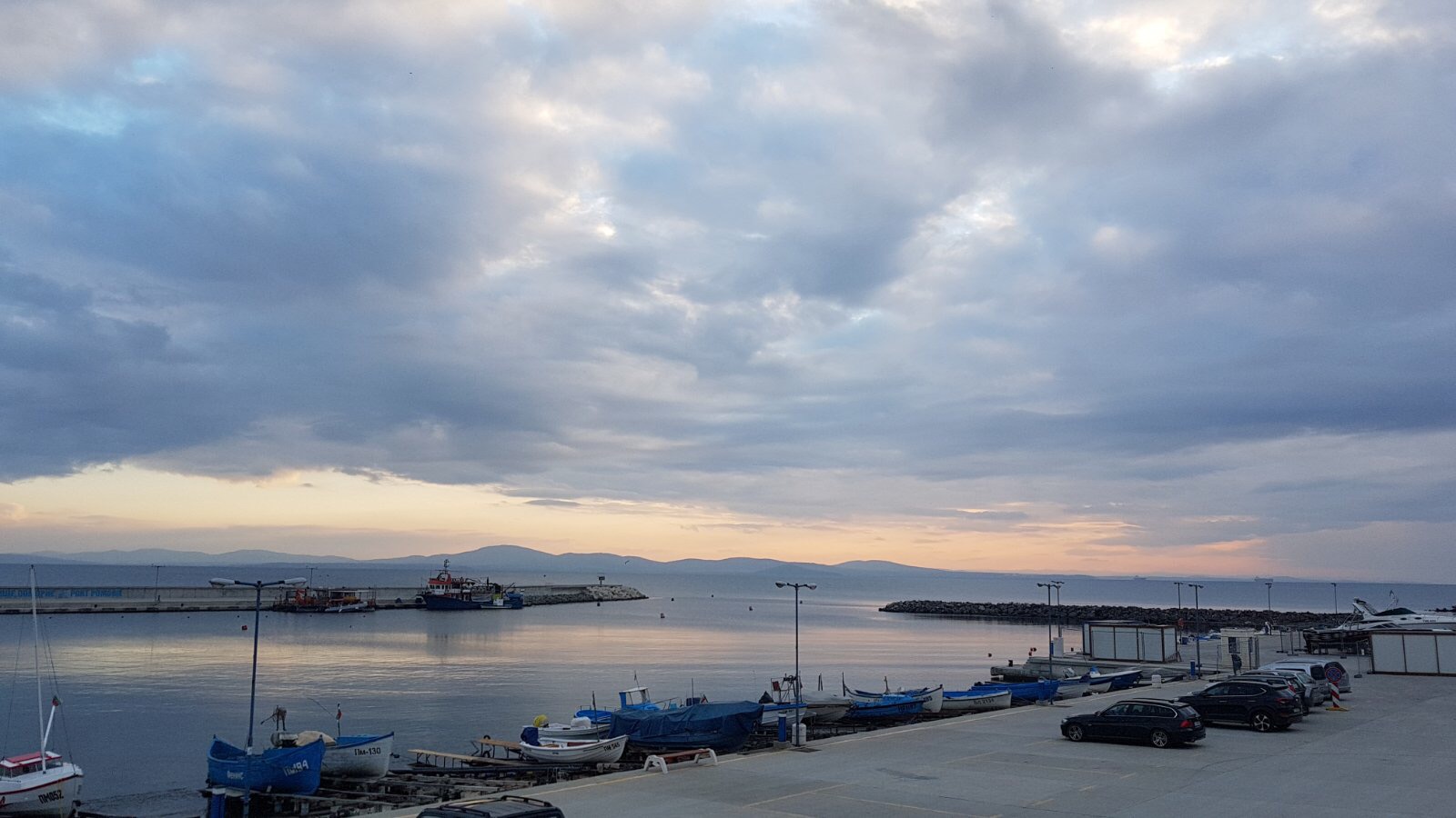 Море, Лодки и пустующие столики рыбного кафе.