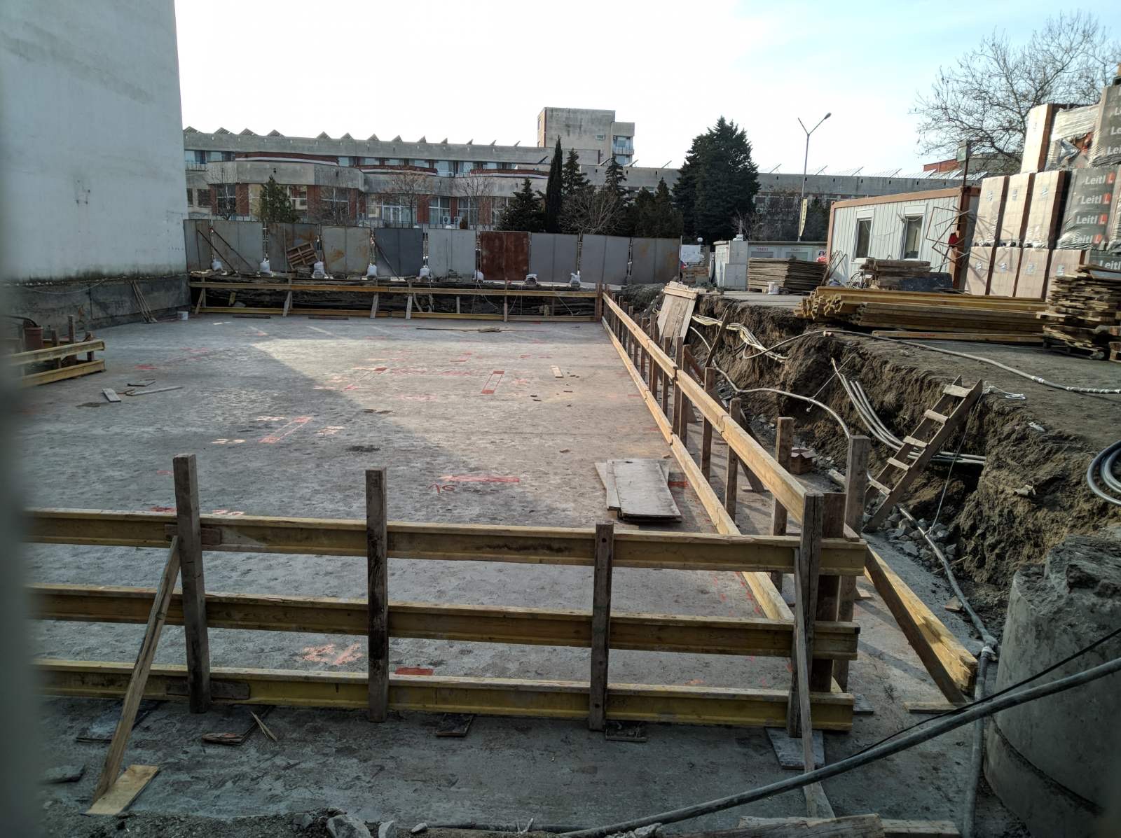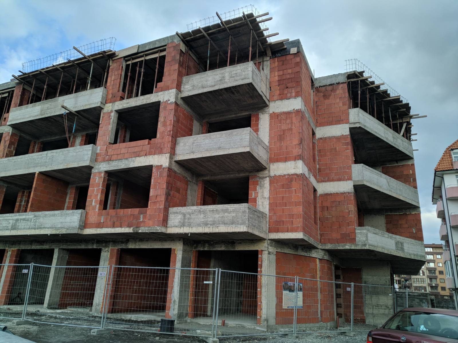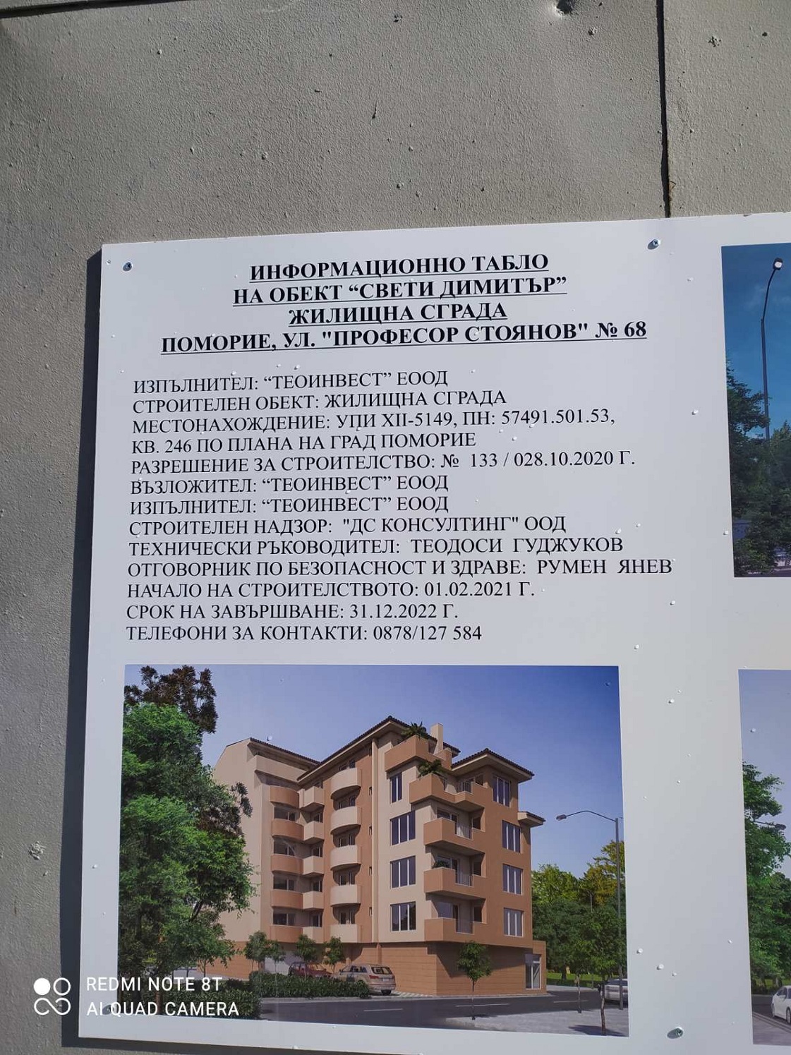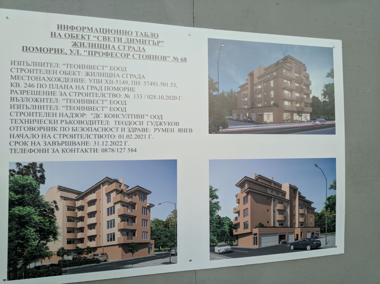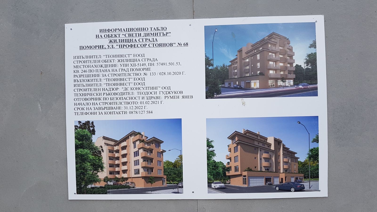 Вид в сторону ул. Цар Иван Александр. Желтый дом со светло-коричневыми балкончиками смотрится уже прямо готовым, хотя надо ещё многое доделать, помимо внешней отделки нижнего этажа.