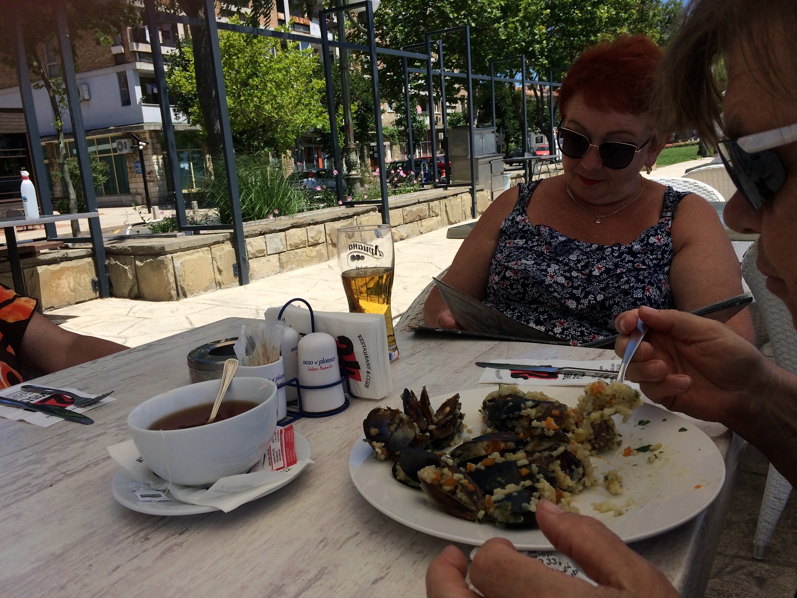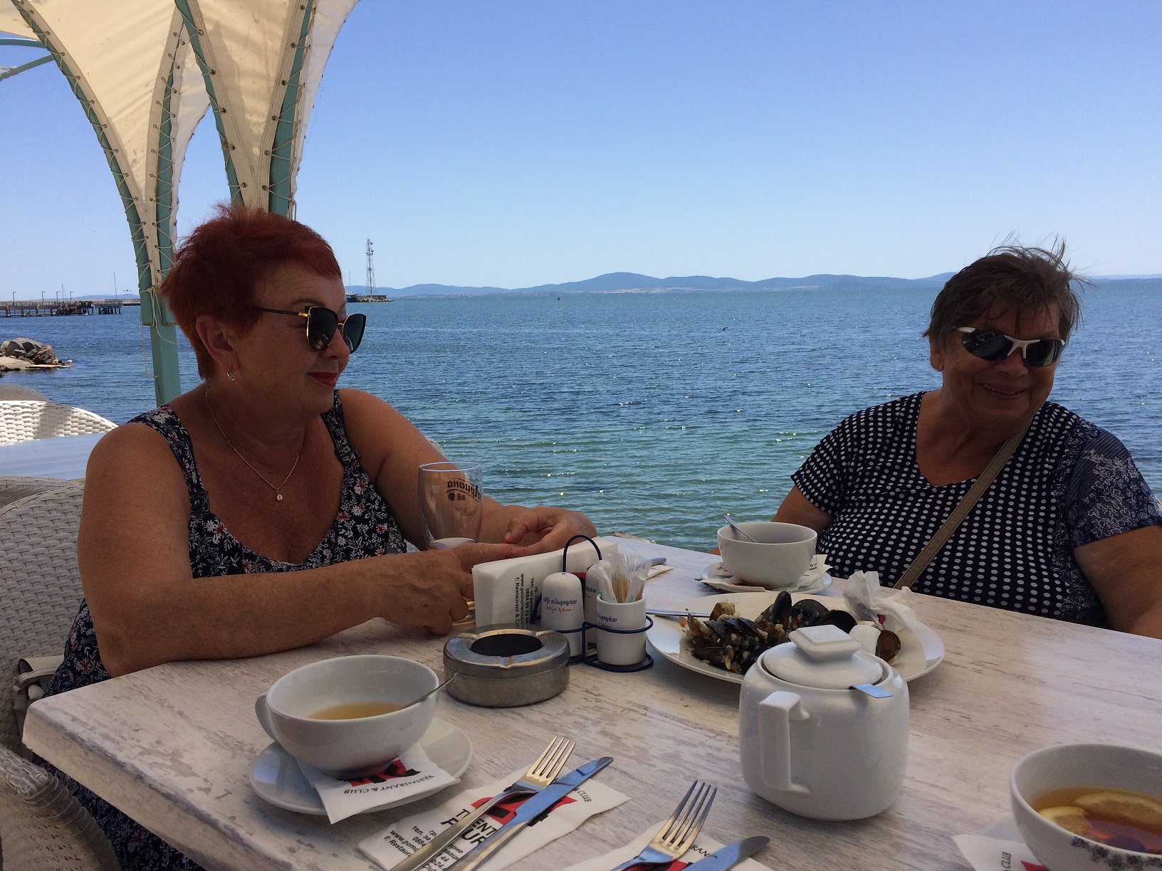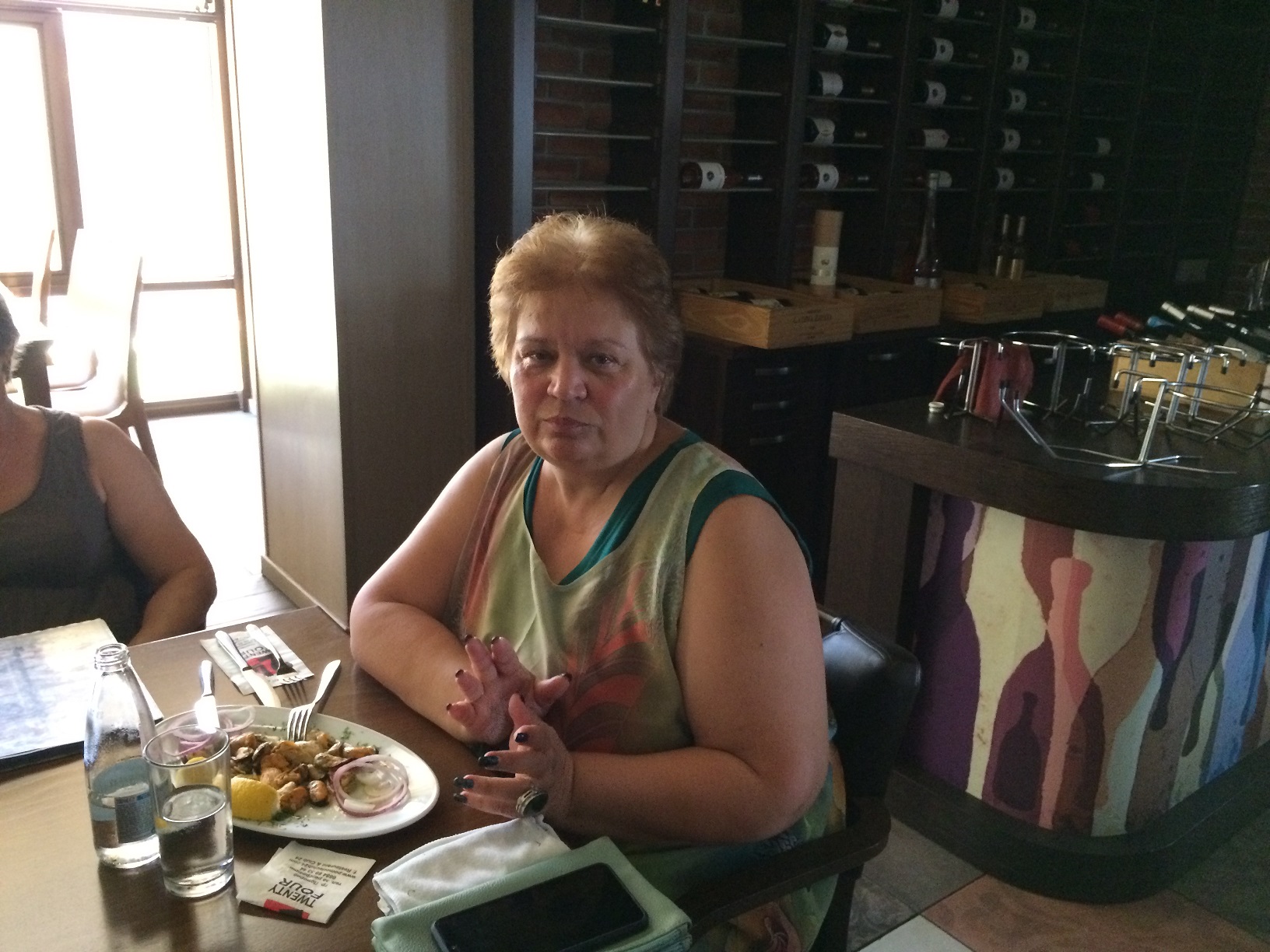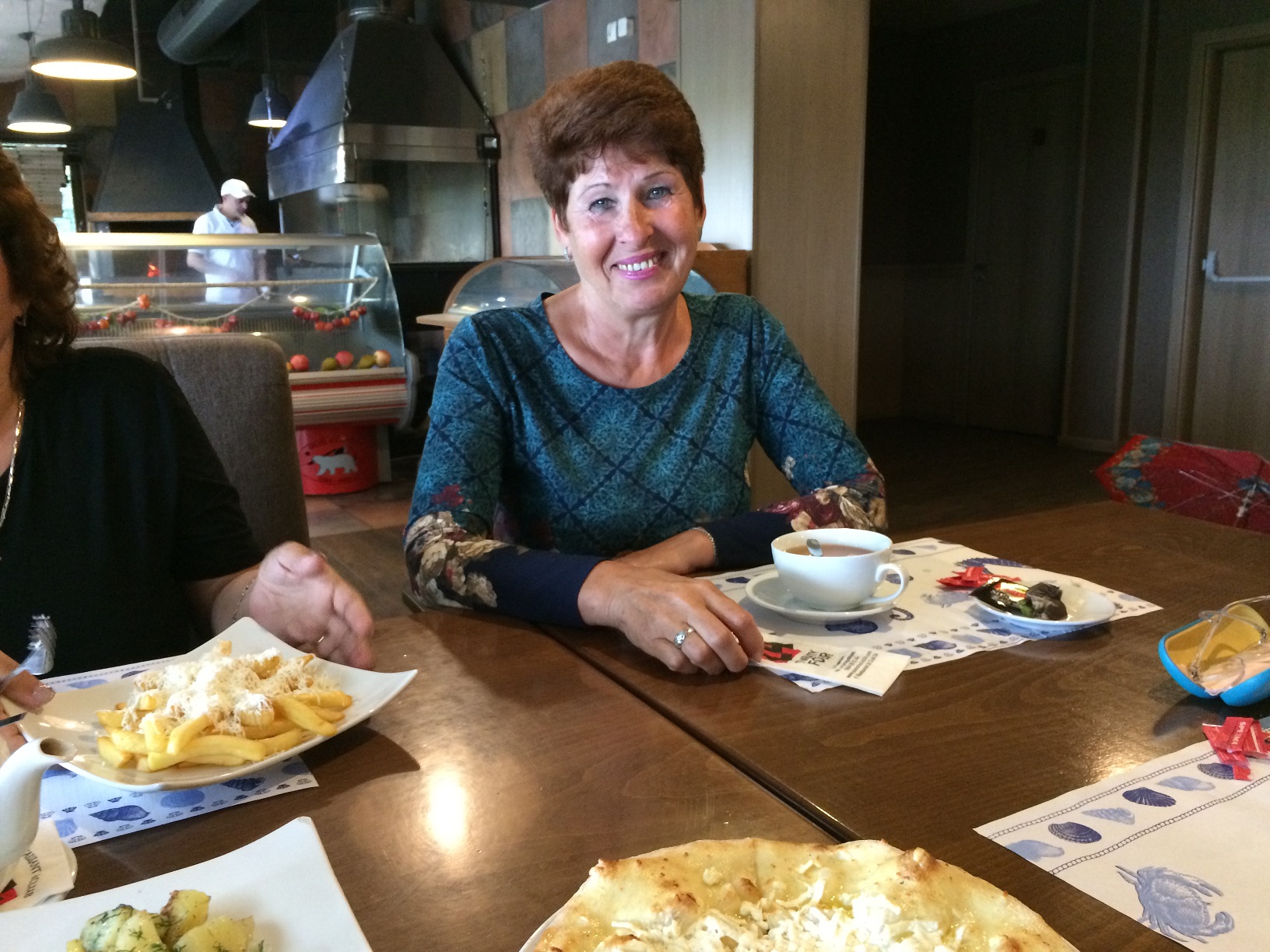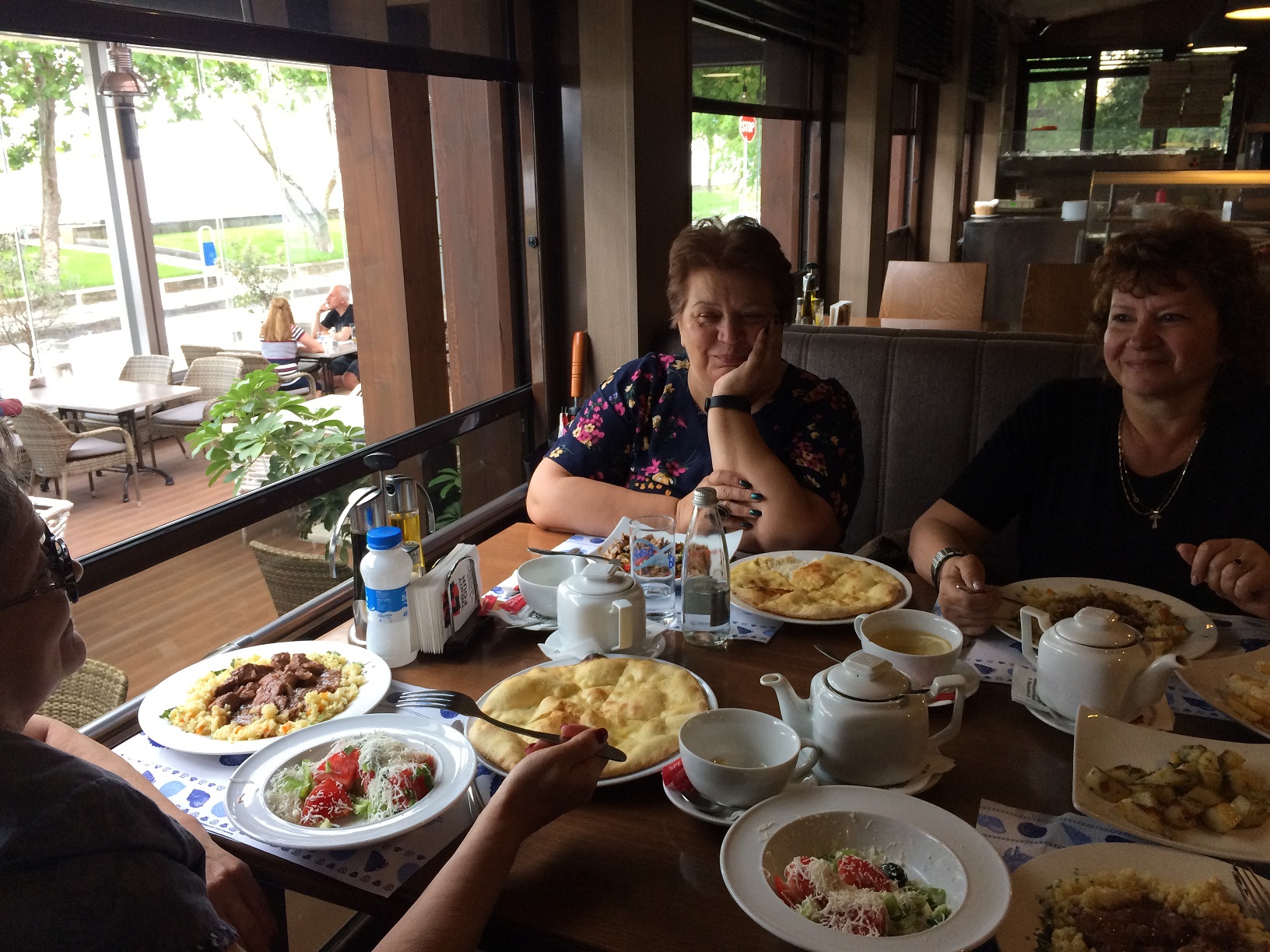 Тогда мы решили сесть внизу на террасе и пообедать вдвоём. Но не успели мы ещё заказать и выбрать себе блюда, как, о радость, к нам подошла Наташа из Самары и заинтересованно спросила: а где все, где Иришка?