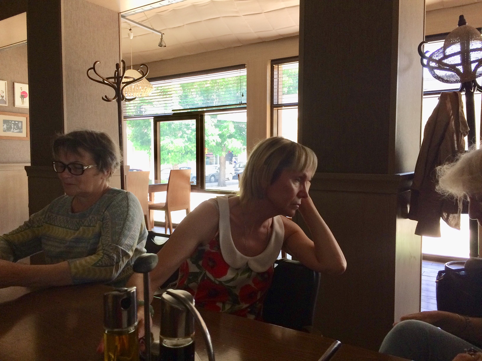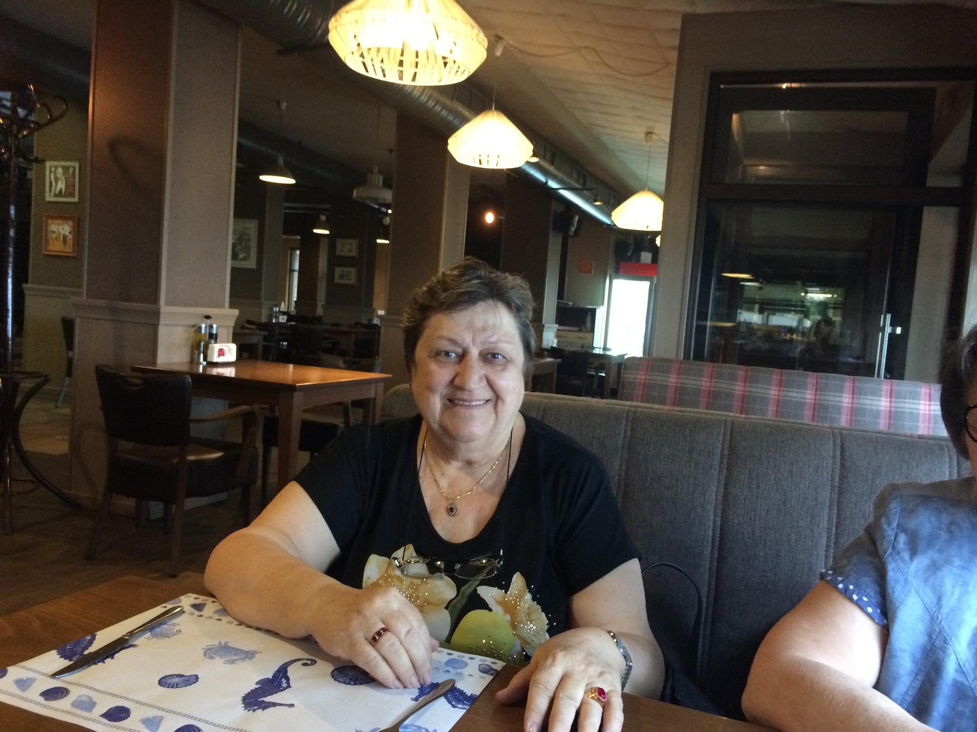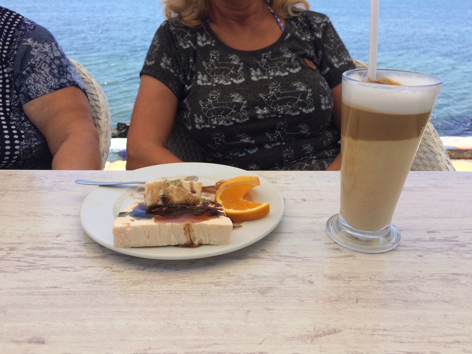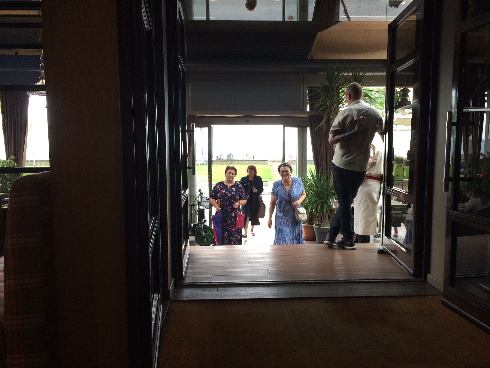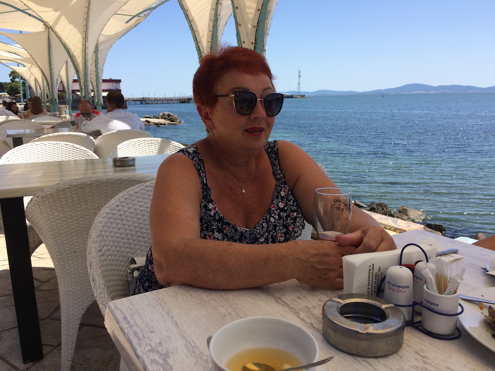 Тогда мы решили сесть внизу на террасе и пообедать вдвоём. Но не успели мы ещё заказать и выбрать себе блюда, как, о радость, к нам подошла Наташа из Самары и заинтересованно спросила: а где все, где Иришка?