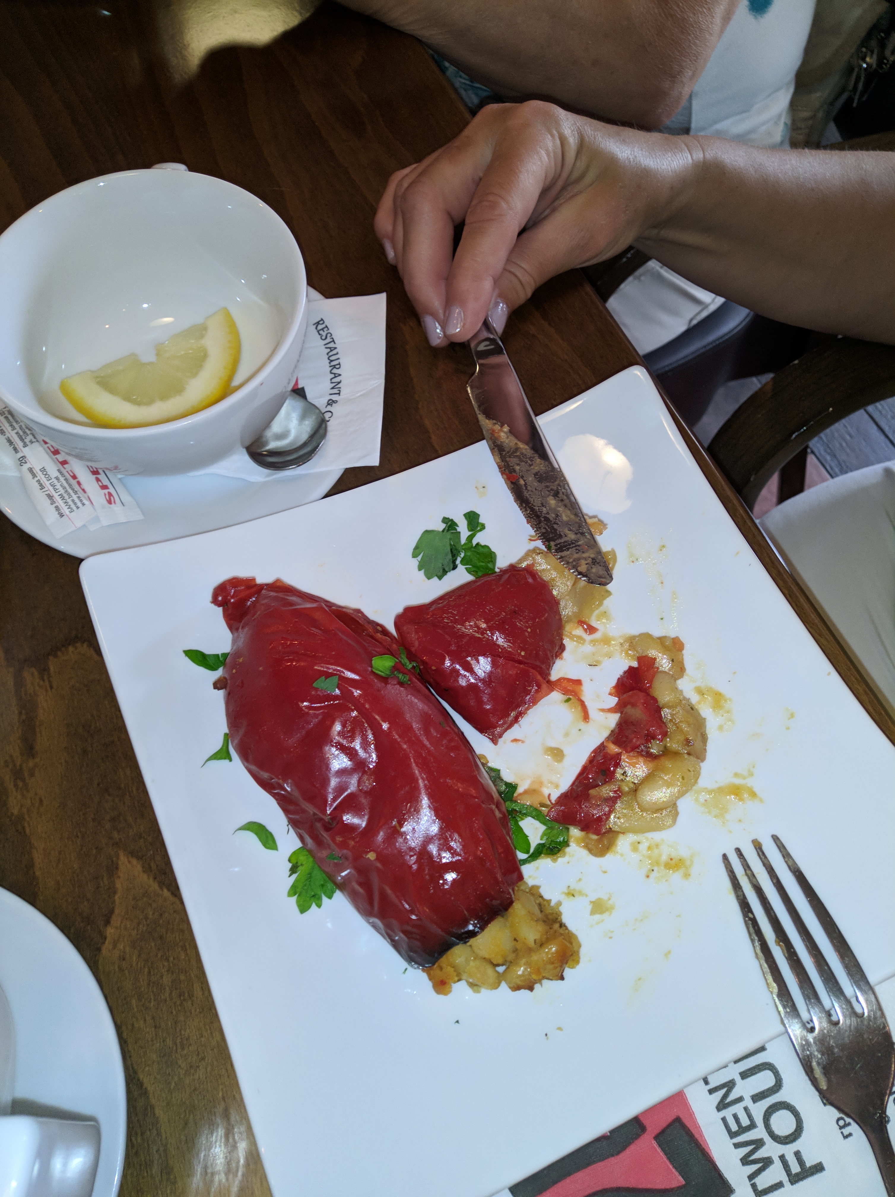 Мы с сестрой поднялись на первый этаж к нашему столику, но, увы, никого не нашли! Я попросила Ольгу подняться и на второй этаж, посмотреть может кто-нибудь туда пришёл. Но и там никого не было.