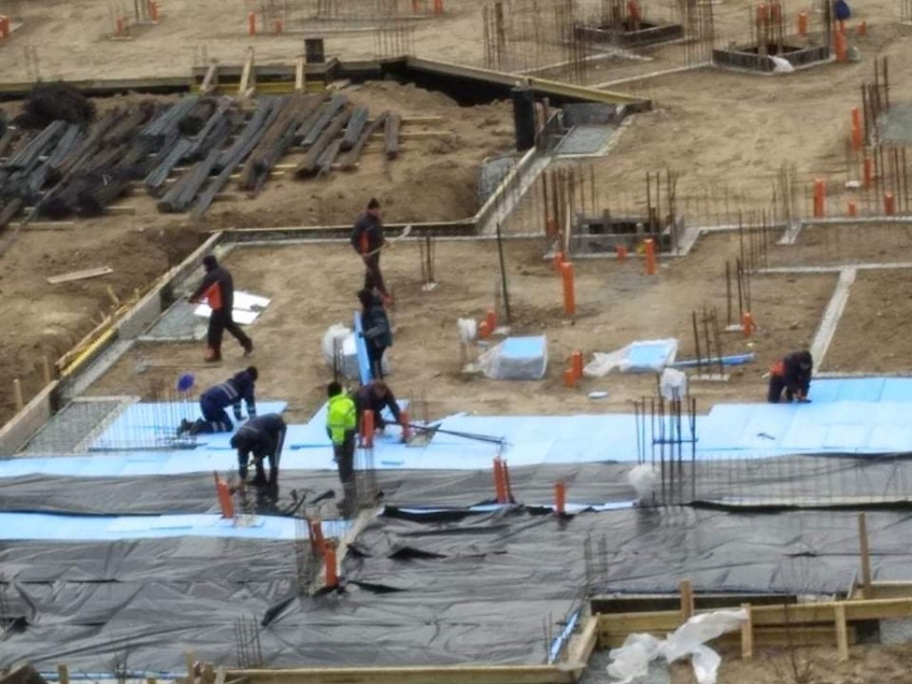 Здесь видны уже оба корпуса L и М. На корпусе М уже подготавливают опалубку для заливки стен следующего этажа.