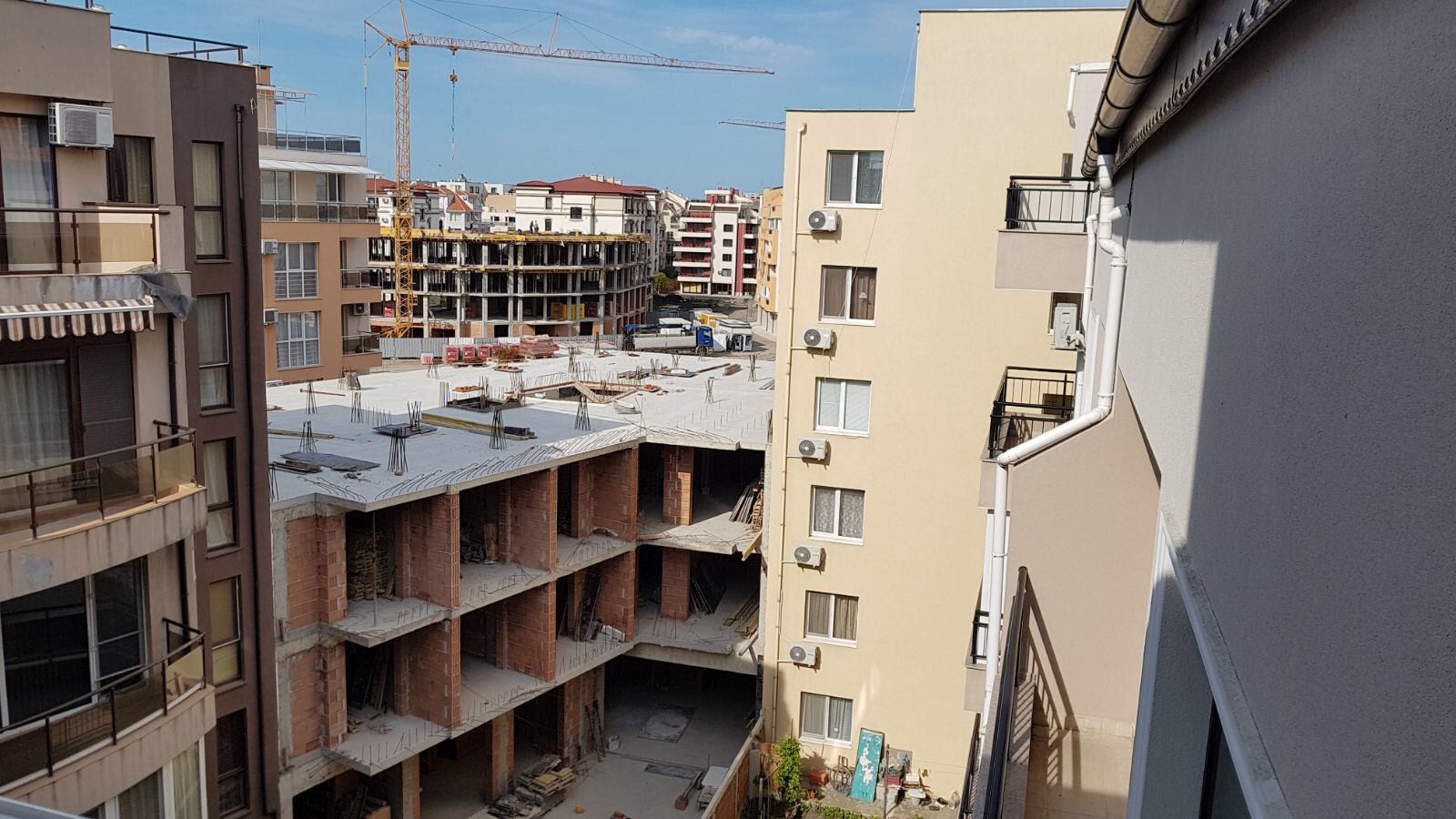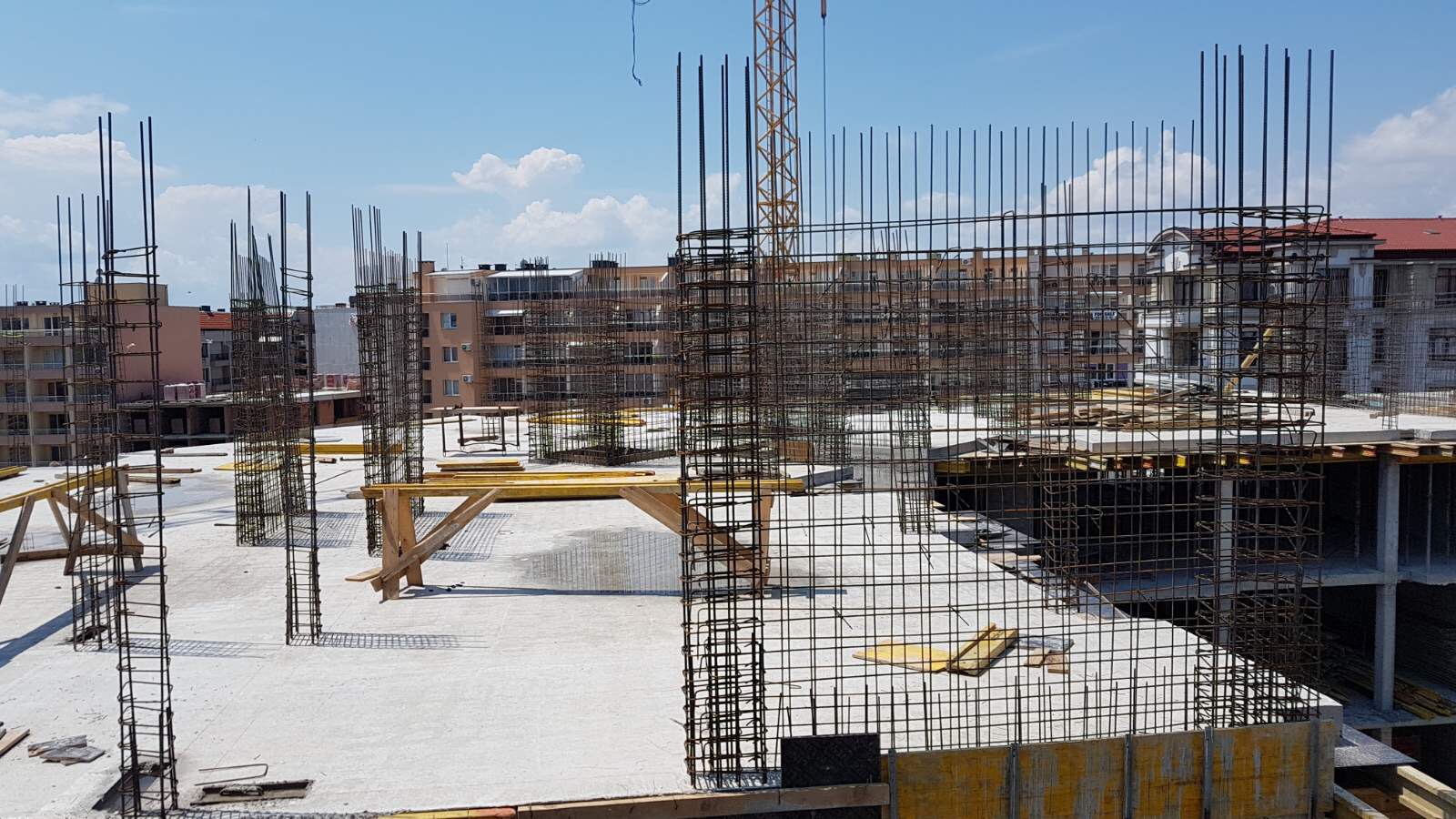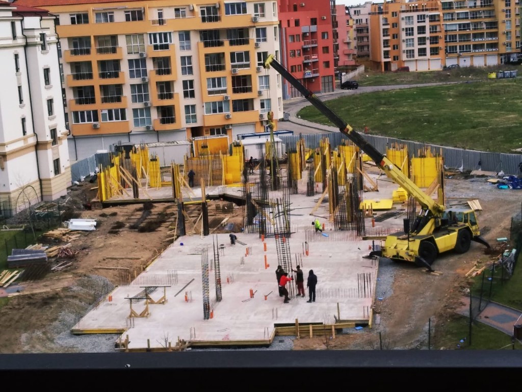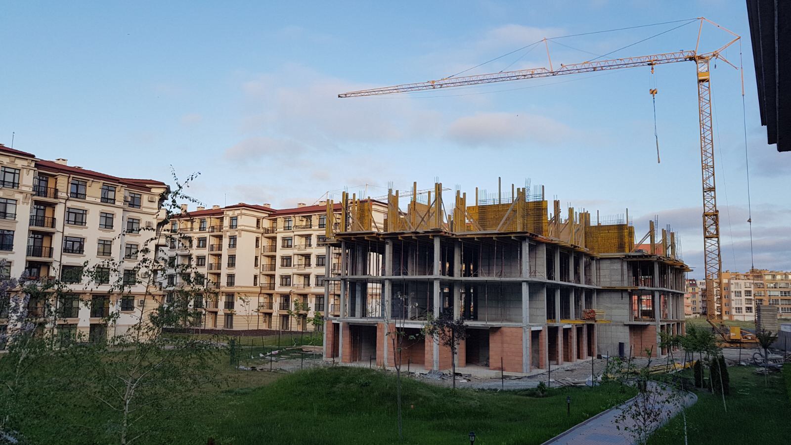 Нвый корпус L Айвазовского парка (снимок сделан с лестничной клетки 5 этажа корпуса К). Чётко видно межэтажное перекрытие и арматура стен пятого этажа , строящегося корпуса.