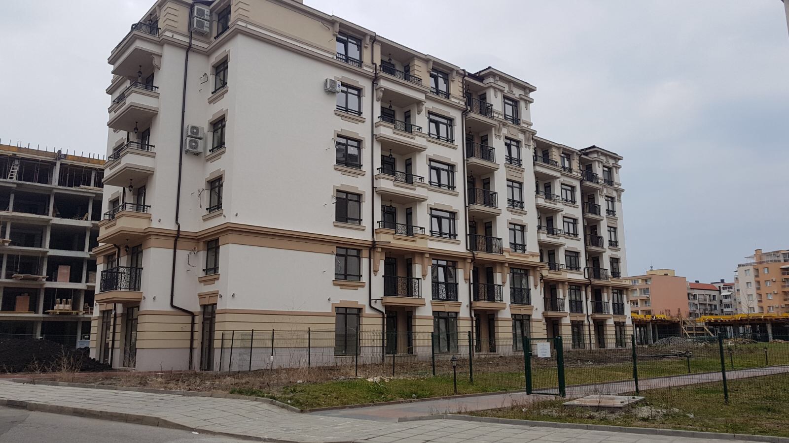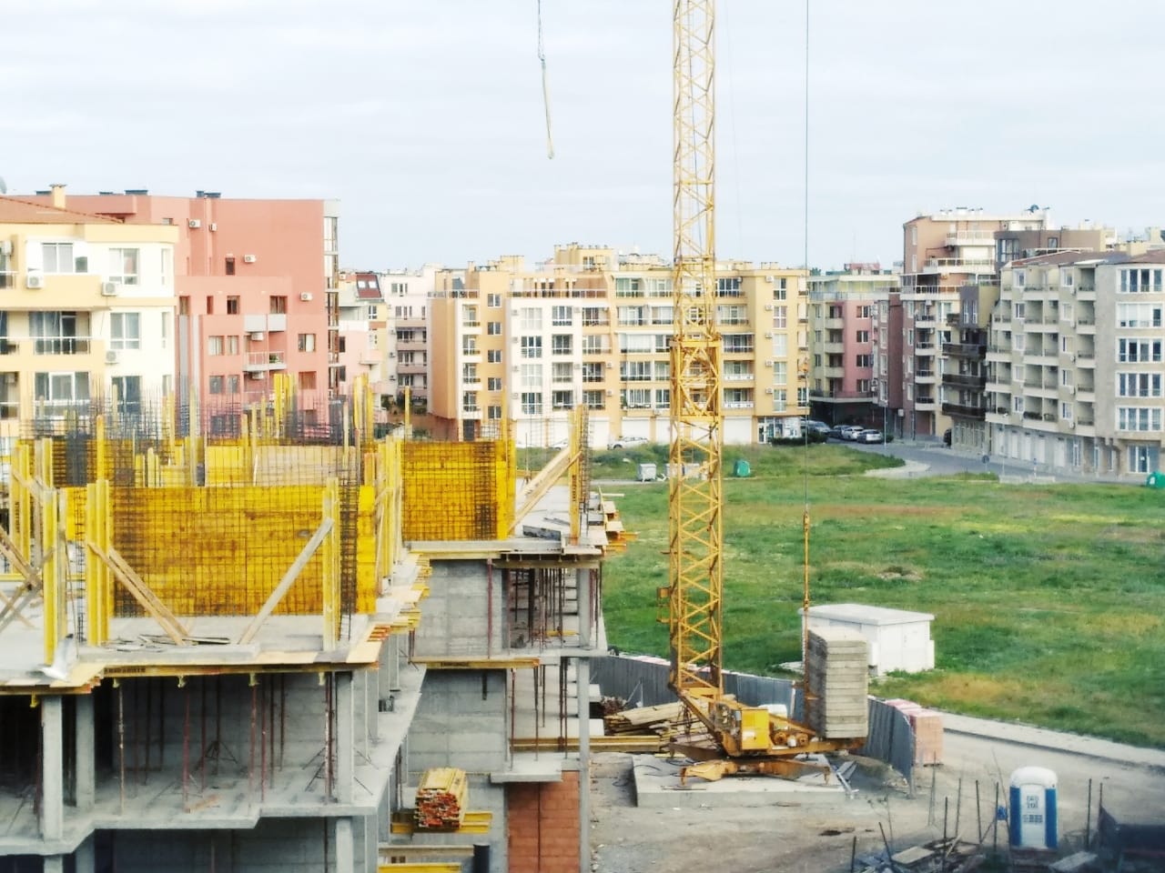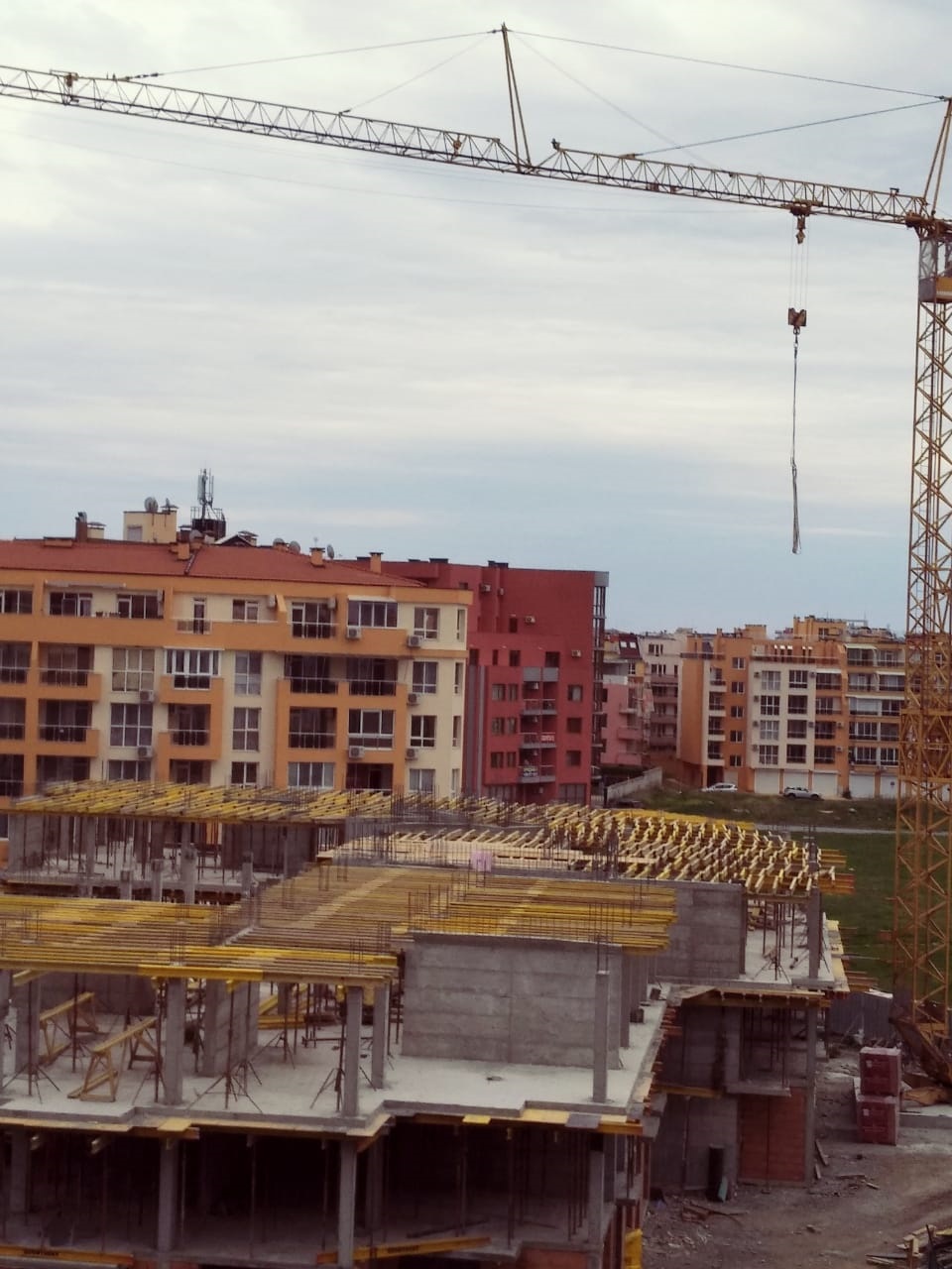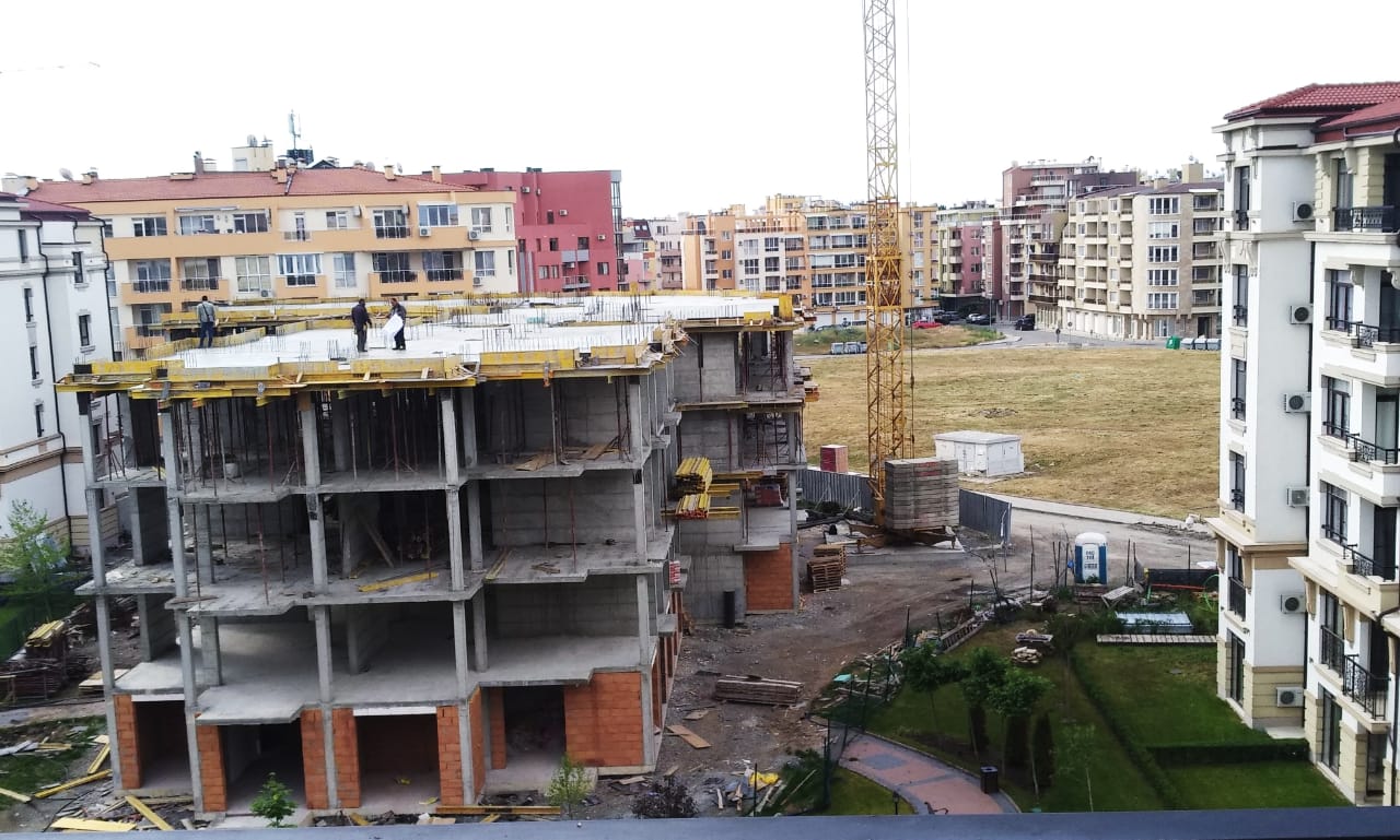 На этом фото корпуса Айвазвского парка поближе. Здесь уже заканчивают опалубку перекрытий между 4-м и 5-м этажами. И новая часть улицы Арда хорошо видна и красный дом компании Тонозлиеви.