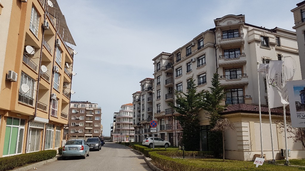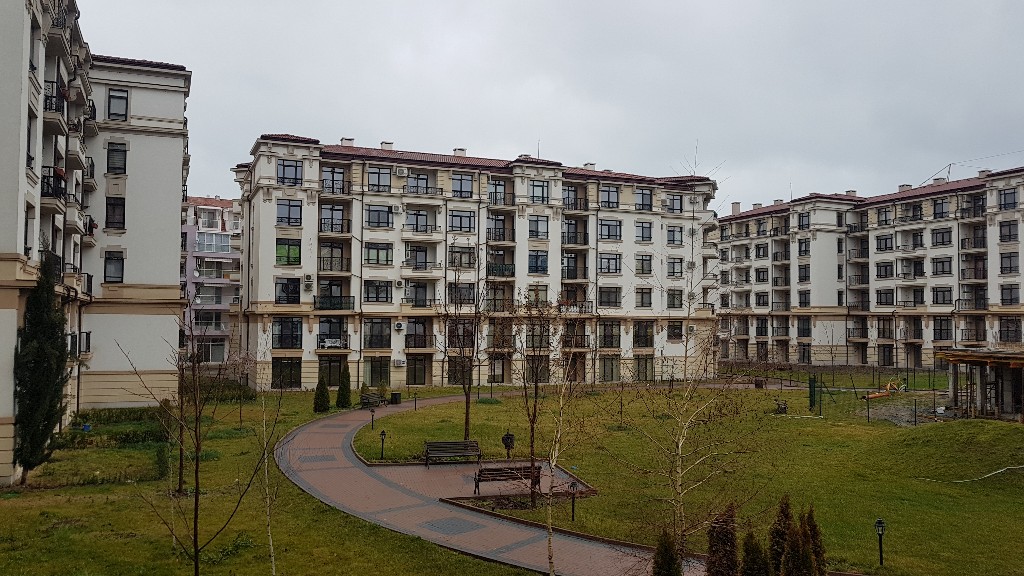 Вид на корпуса L и М Айвазовского парка с ул.Болгария через парк Капка.
