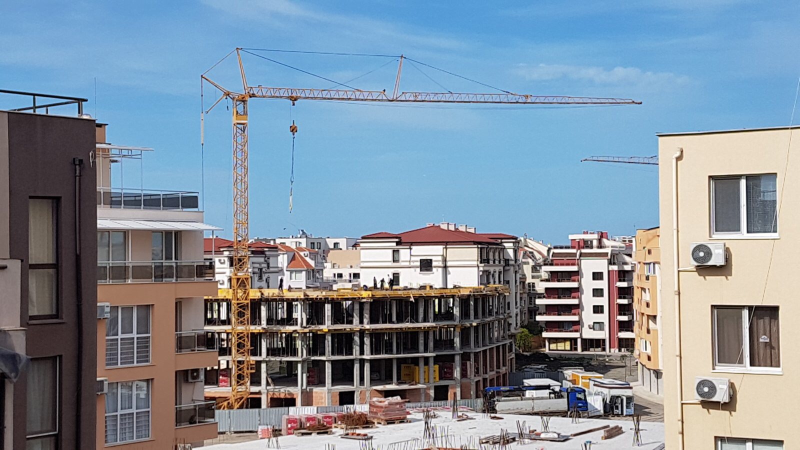 А это сегодняшняя фотография корпуcов L и M , присланная мне Танюшкой. И дома подросли, и бетононасос вместо подъёмного крана появился! Вот людей, действительно маловато. Я человек только 2-х вижу.