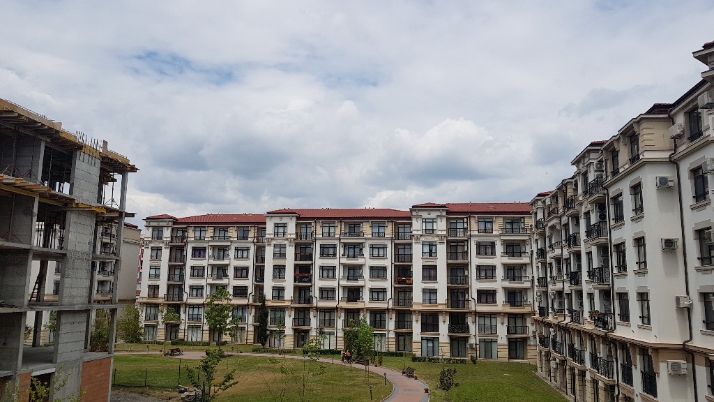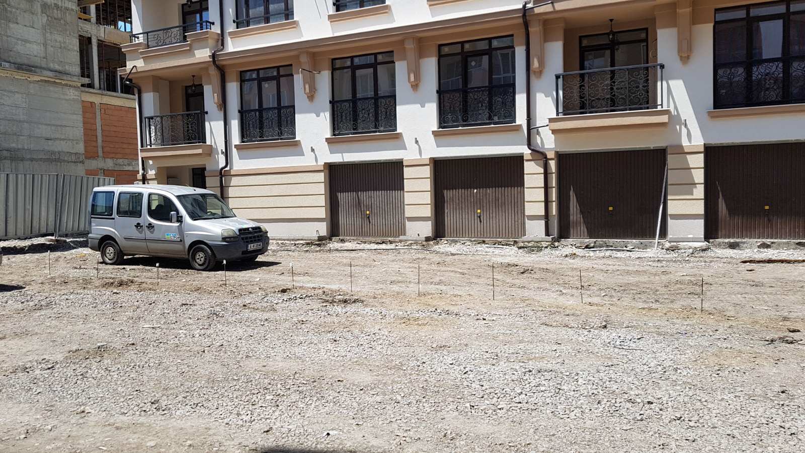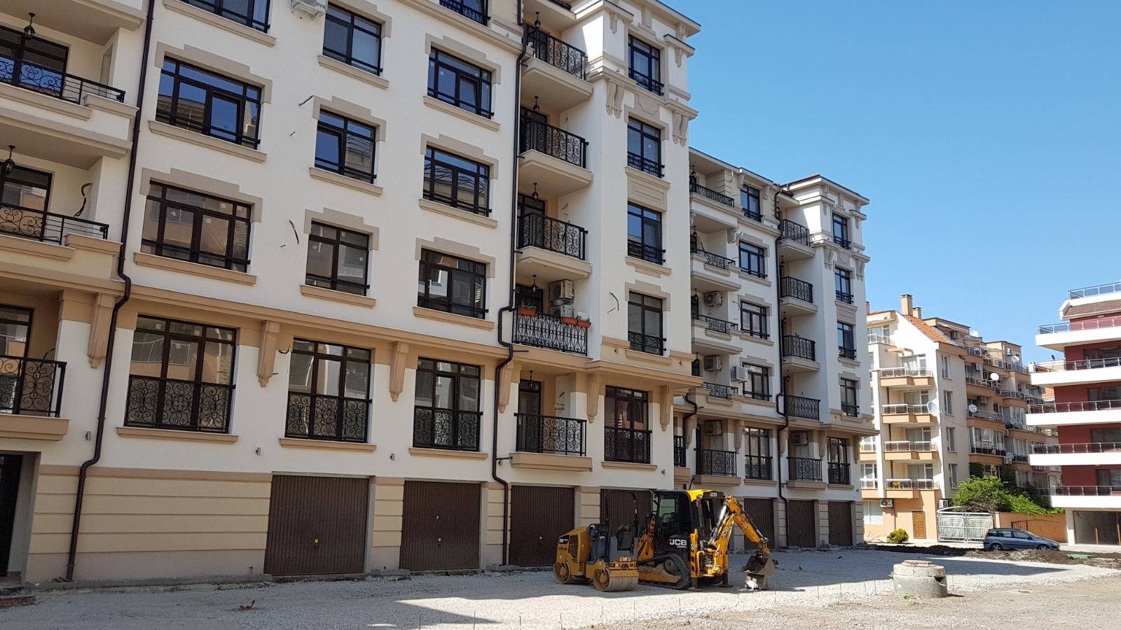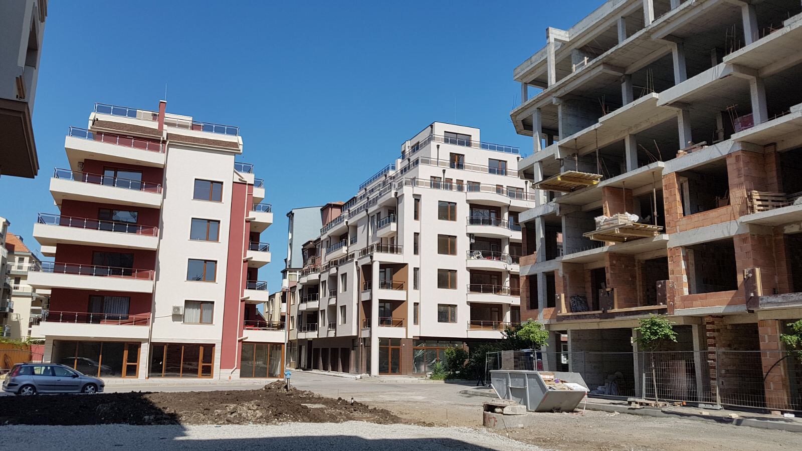 Этот снимок уже сделан практически снаружи комплекса Айвазовский парк с ул. Митрополит Климент, идушеё вокруг будущего парка. Слева виден угол корпуса А, дальше строящиеся корпуса M и L.