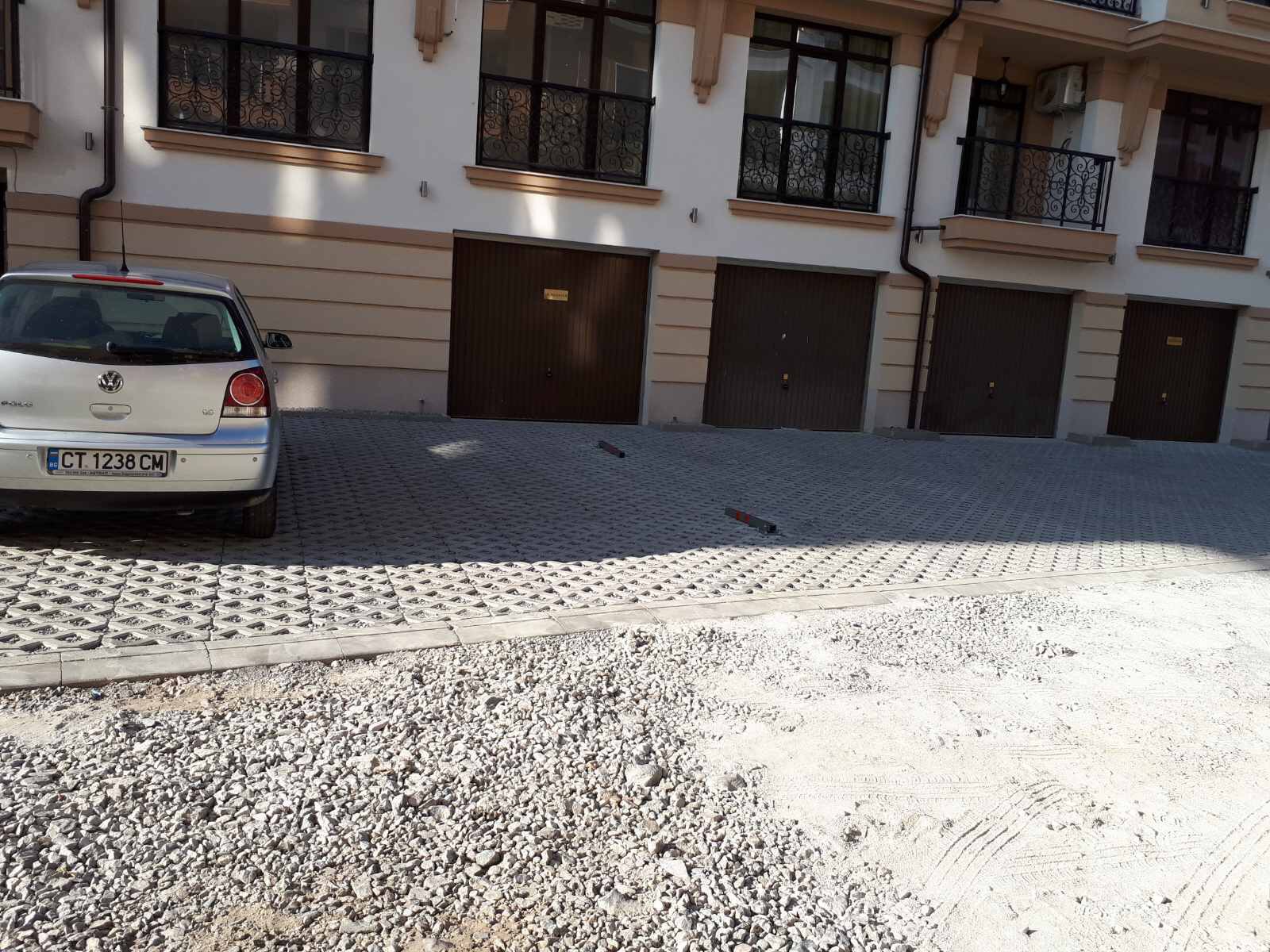 На этих фотографиях хорошо видна плитка "в клеточку" специально возле гаражей новых корпусов.