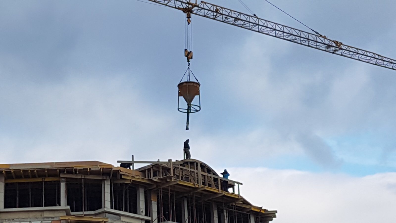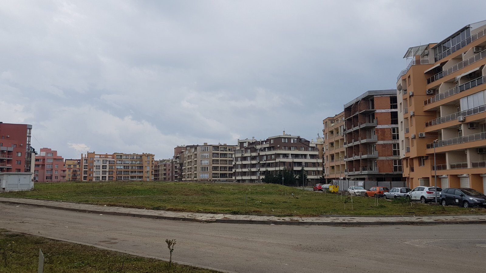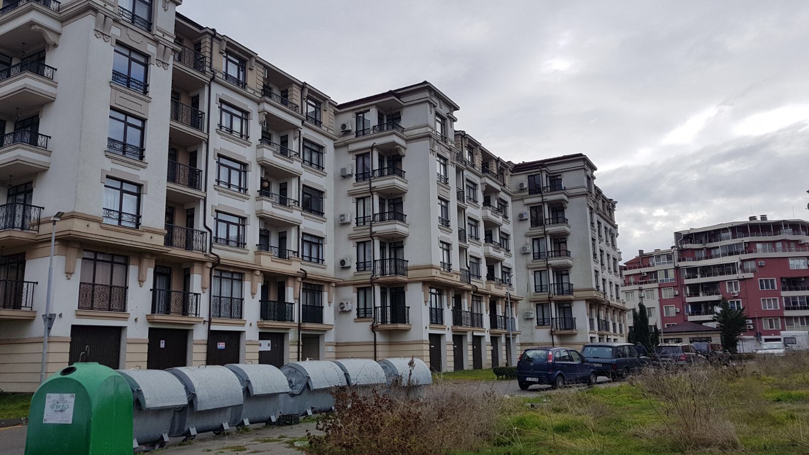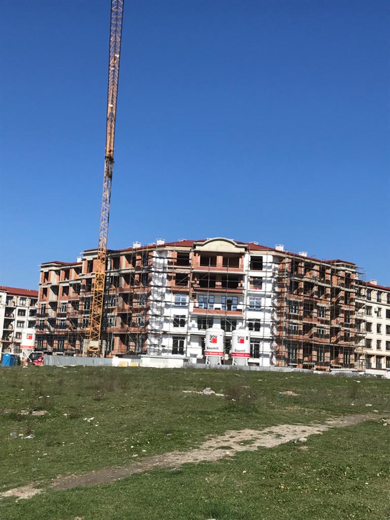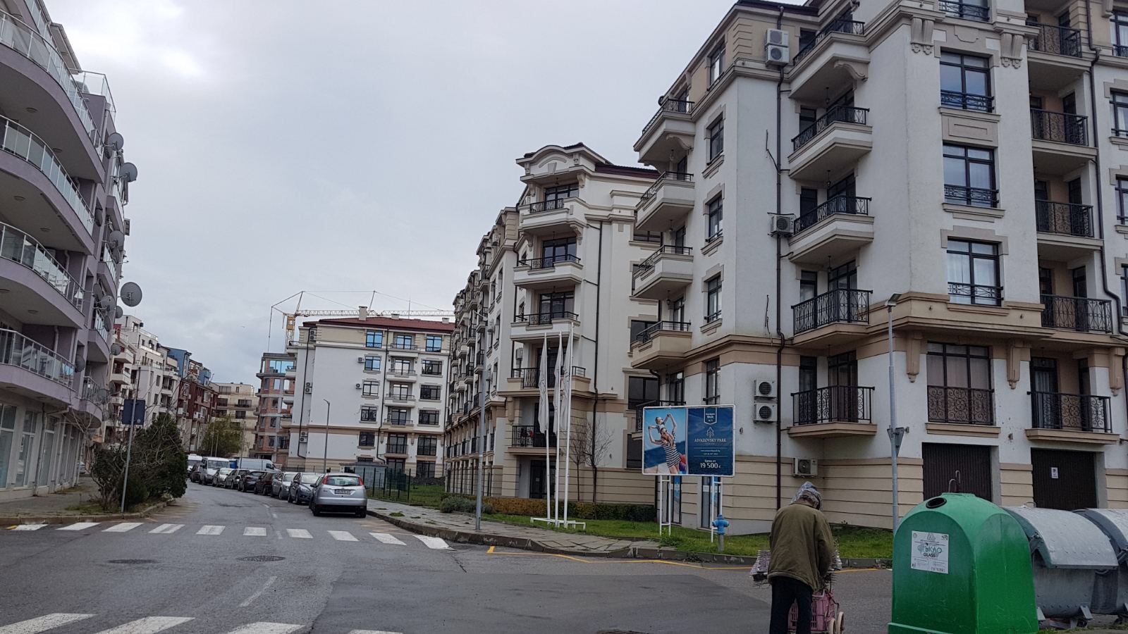 А это строящиеся корпуса (в основном корпус L) уже снаружи комплекса с ул. Митрополит Климент. Видно, что и на корпусе L идёт остеклены окна нижних двух этажей.