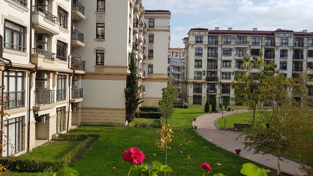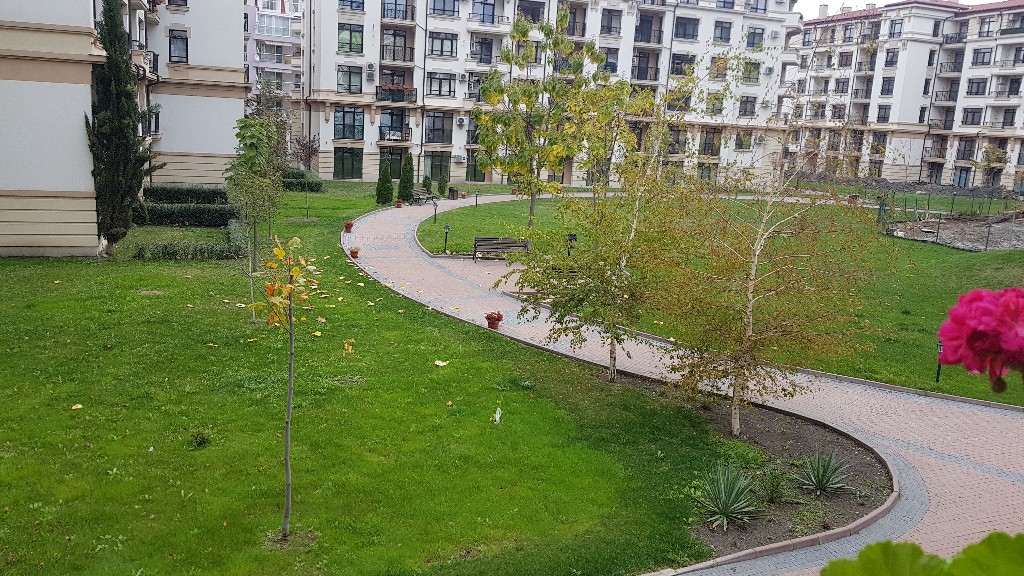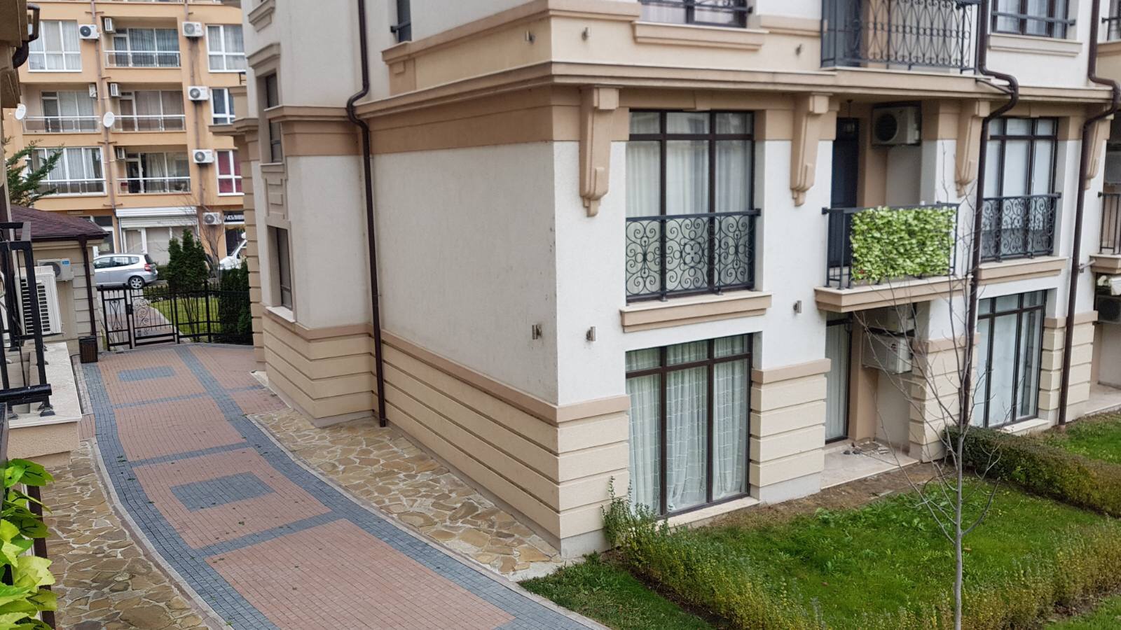 Вход на территорию комплекса и нижние этажи корпуса D, с чьим-то знакомым зелёным балкончиком!