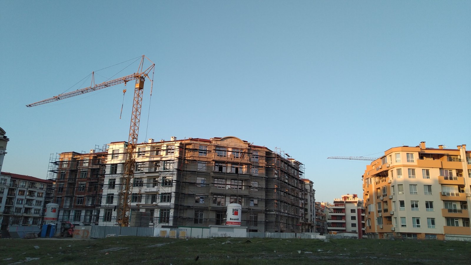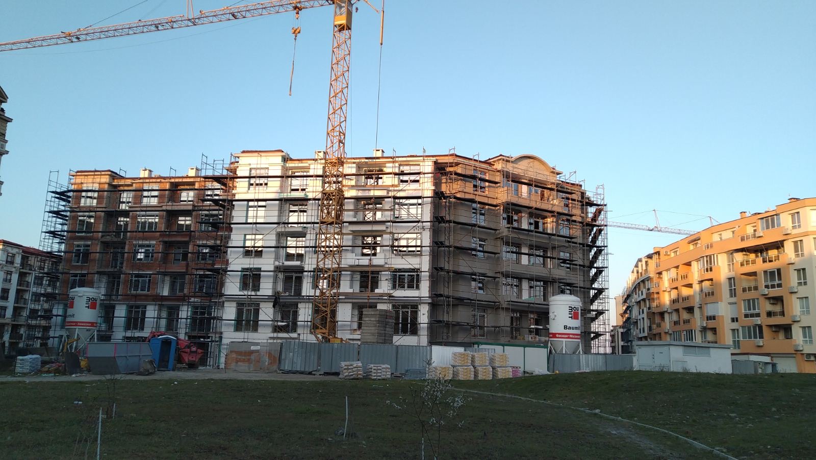 Стройка интенсивно идёт, корпуса утепляются пенопластом.