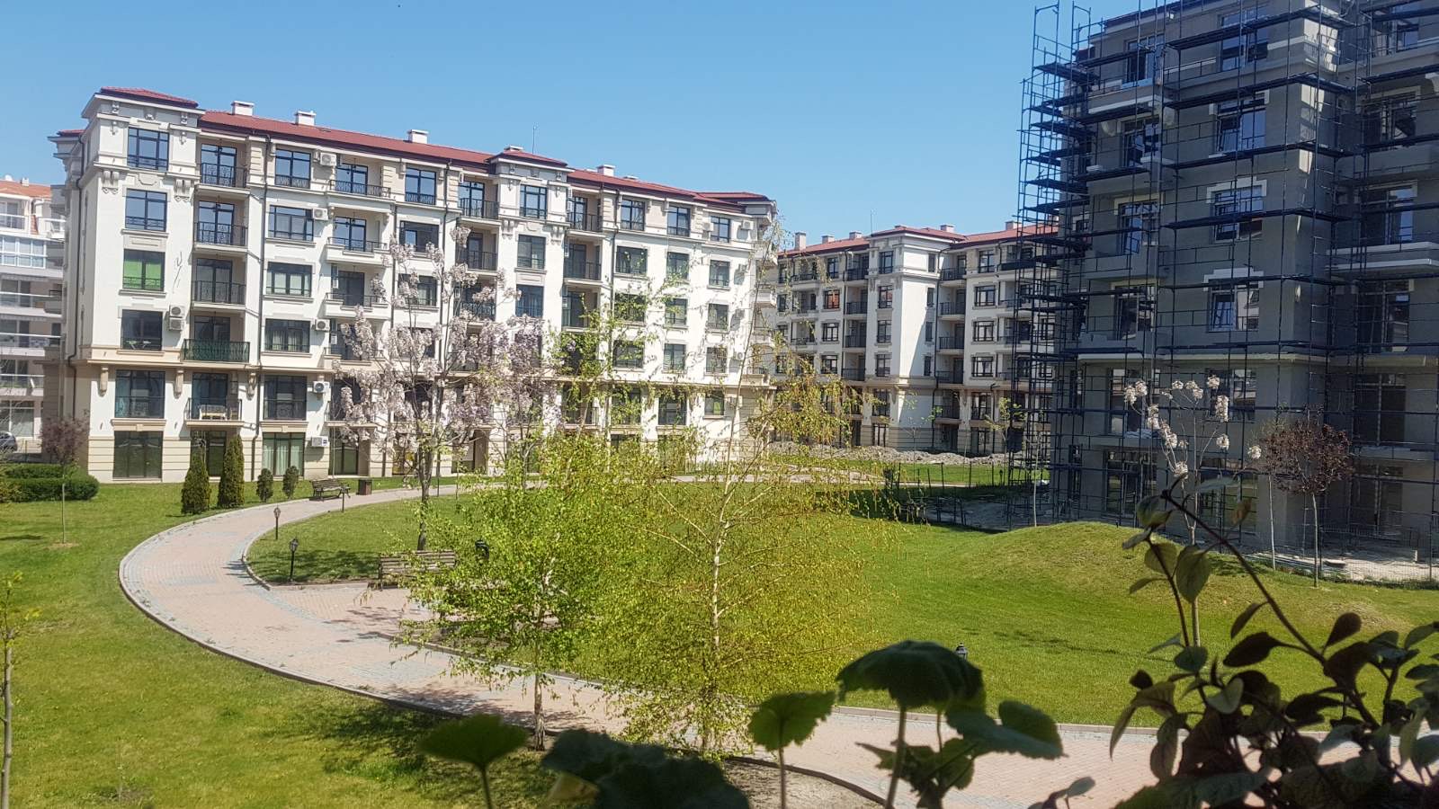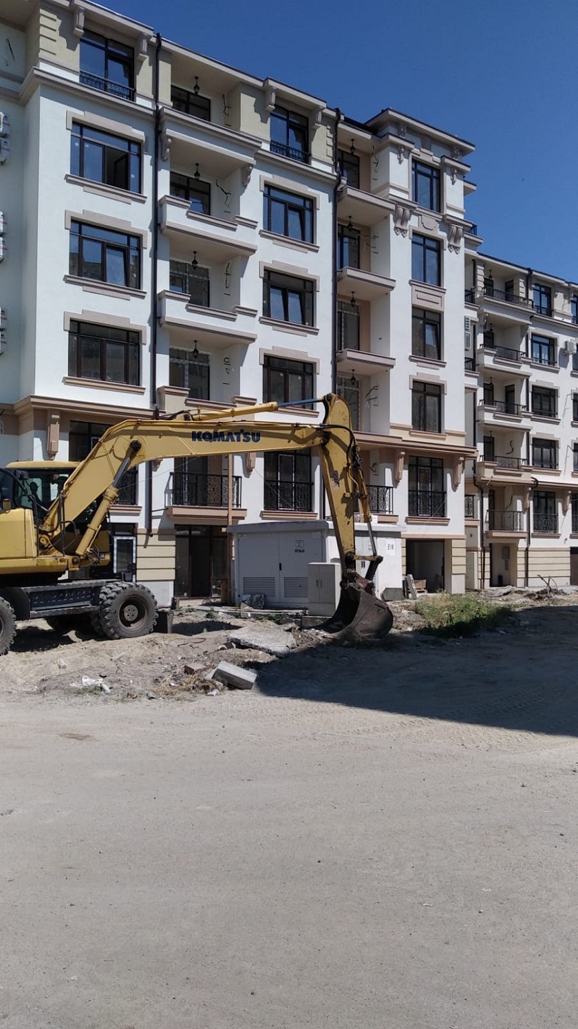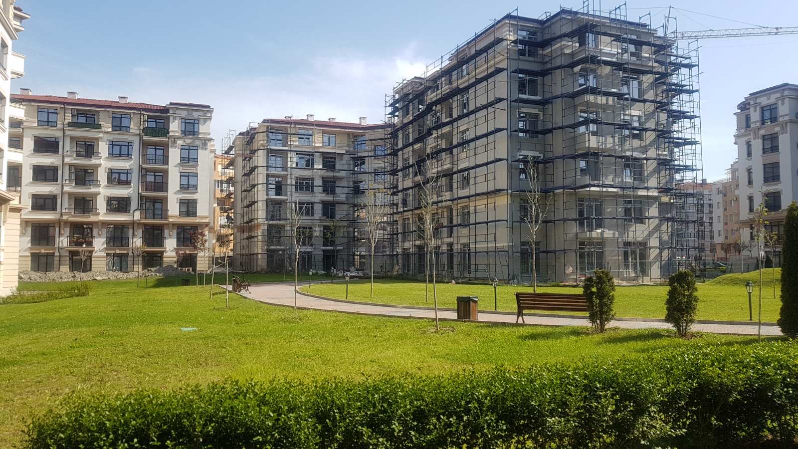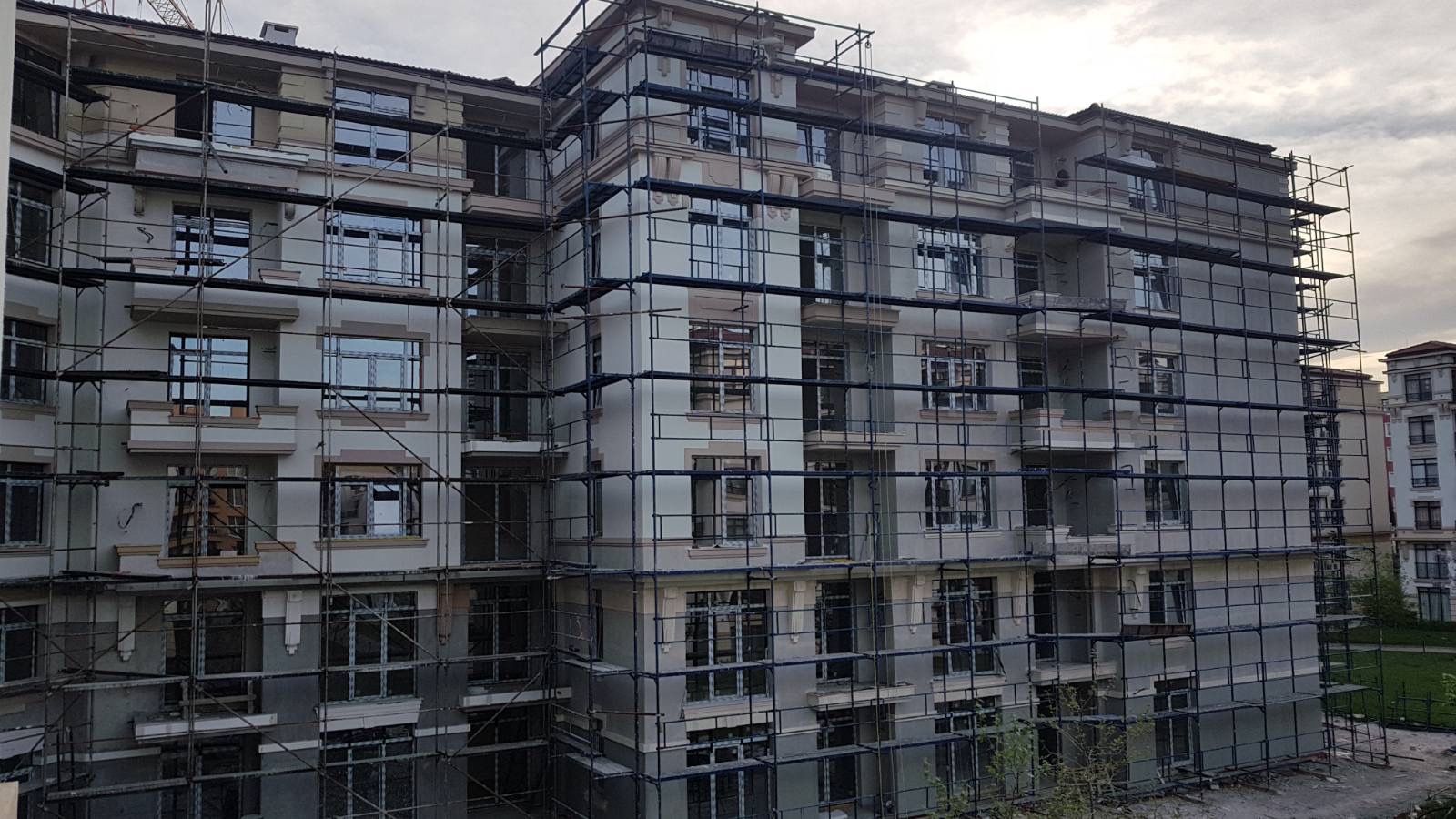 Видно, что центральная часть новых корпусов уже чем-то загрунтована, а пенопласт кладут уже на корпусе М.